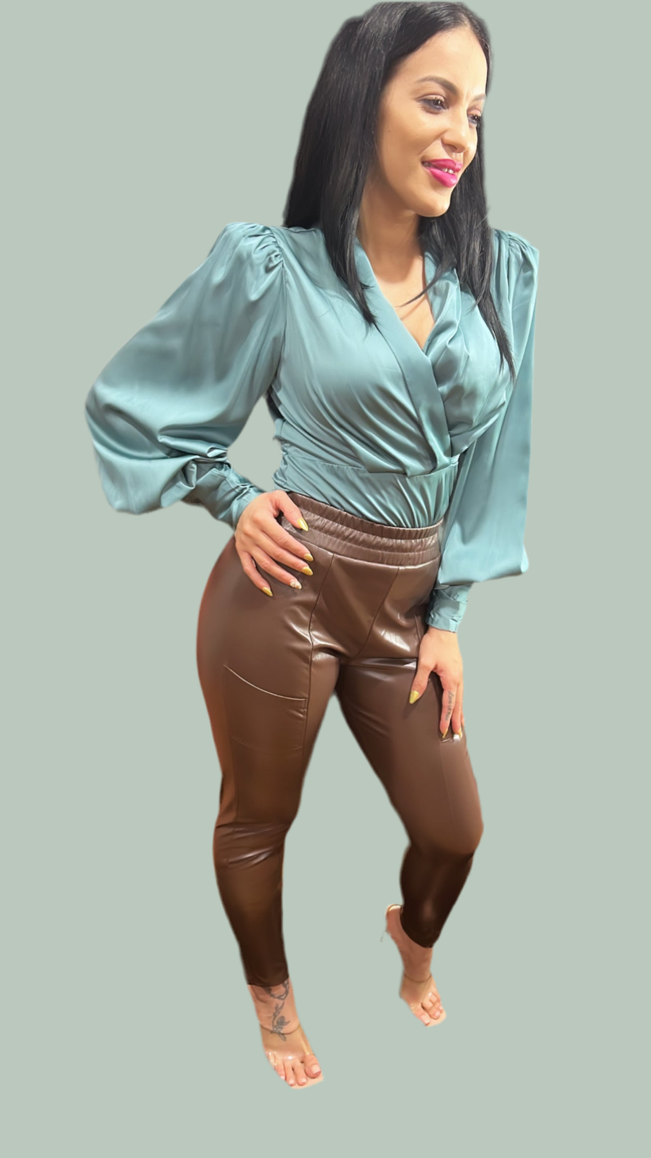 F V Neck Satin Bodysuit Sexy Women Green Long Sleeve Fashion White Rose Gold Autumn Winter Casual Body Tops Party