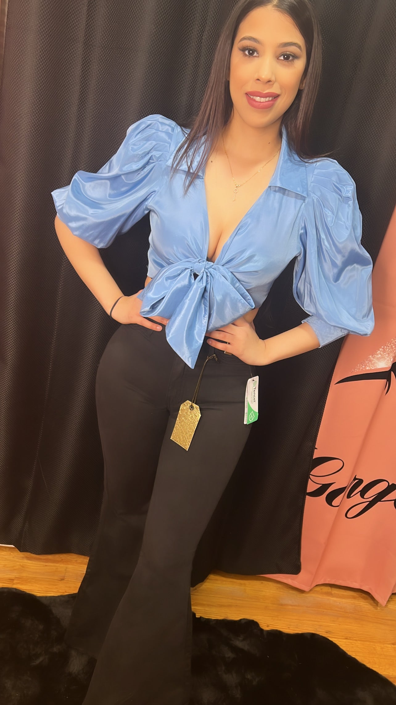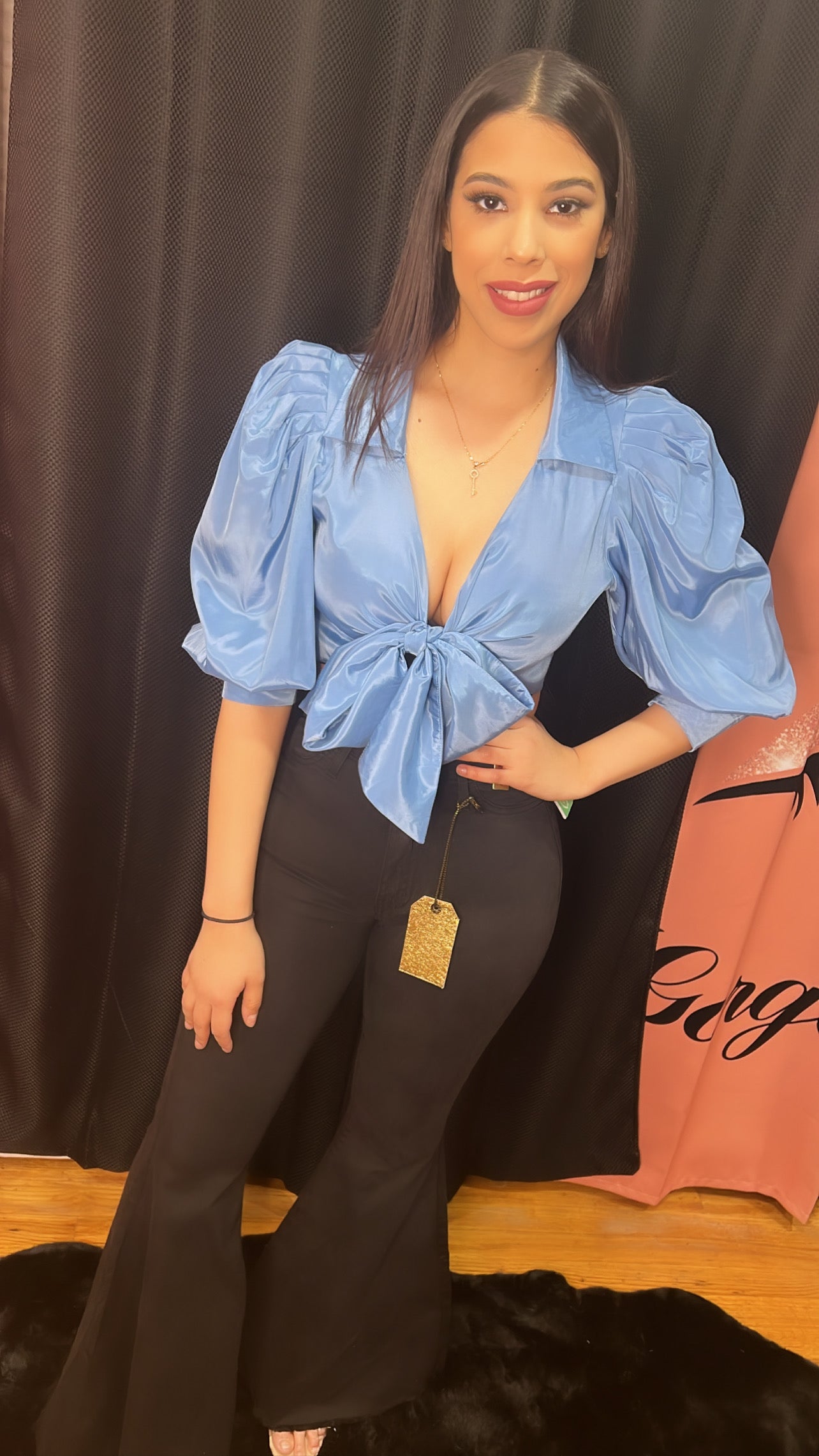 Women's Puff Sleeve Wrap Blouses Sexy Deep V-neck Solid Bow Knot Front Female Tops Summer Fashion Beach Party Lady Blouse