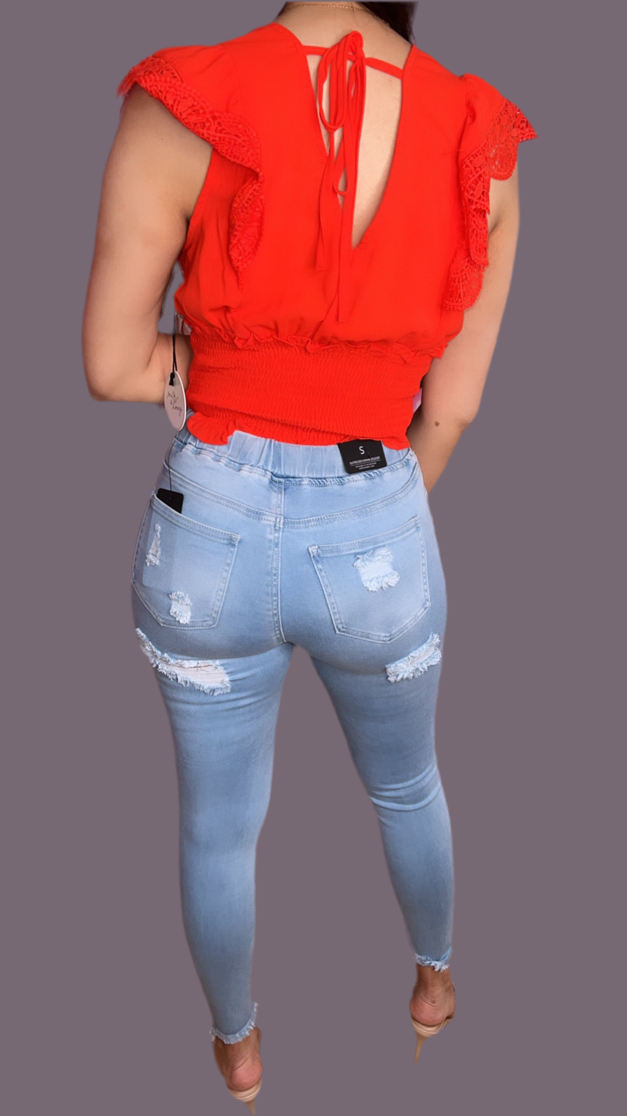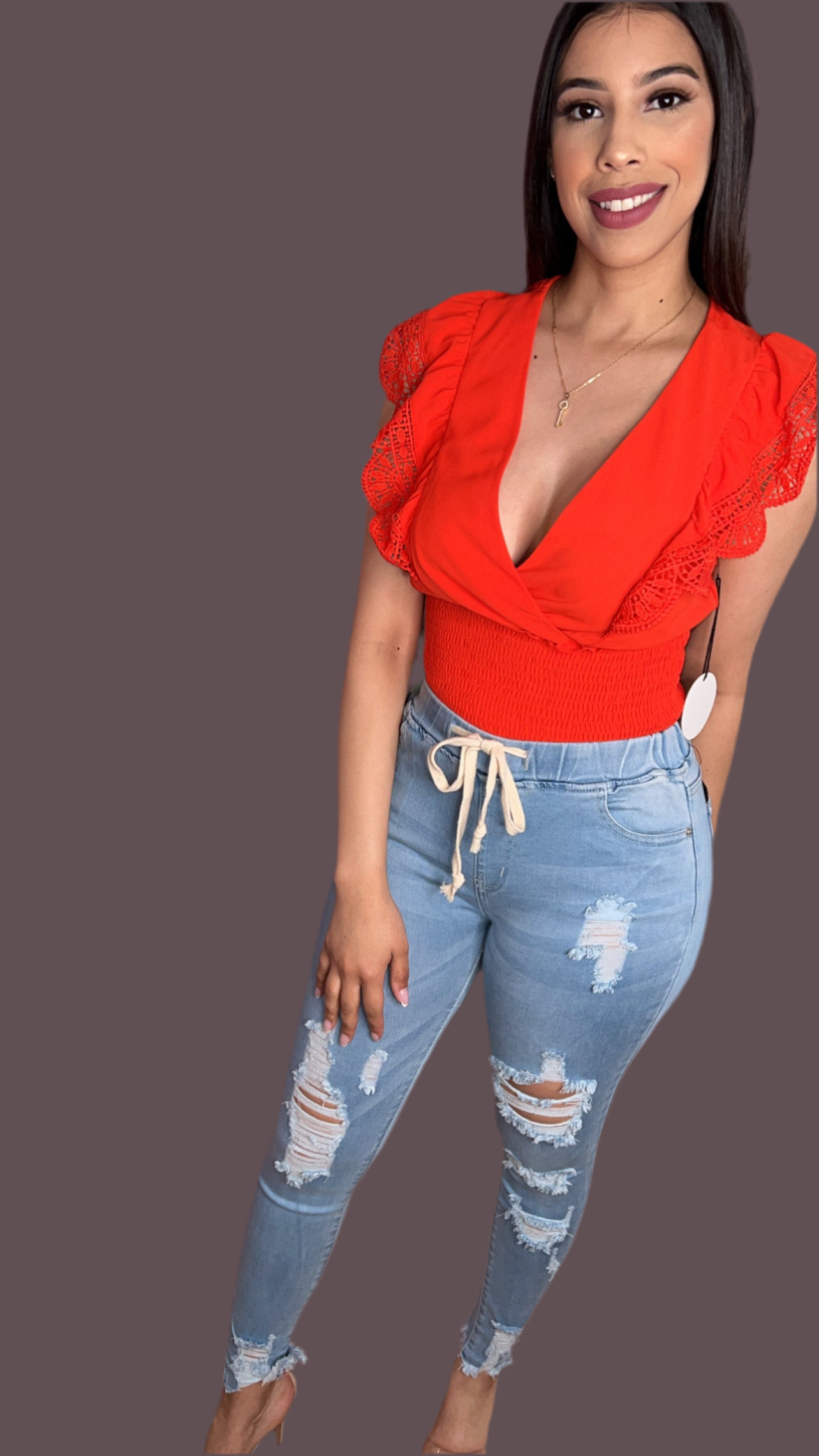 jeans vintage Women's Elastic waist elastic jeans high waist hole Slim small foot lace up pants jeans woman high waist