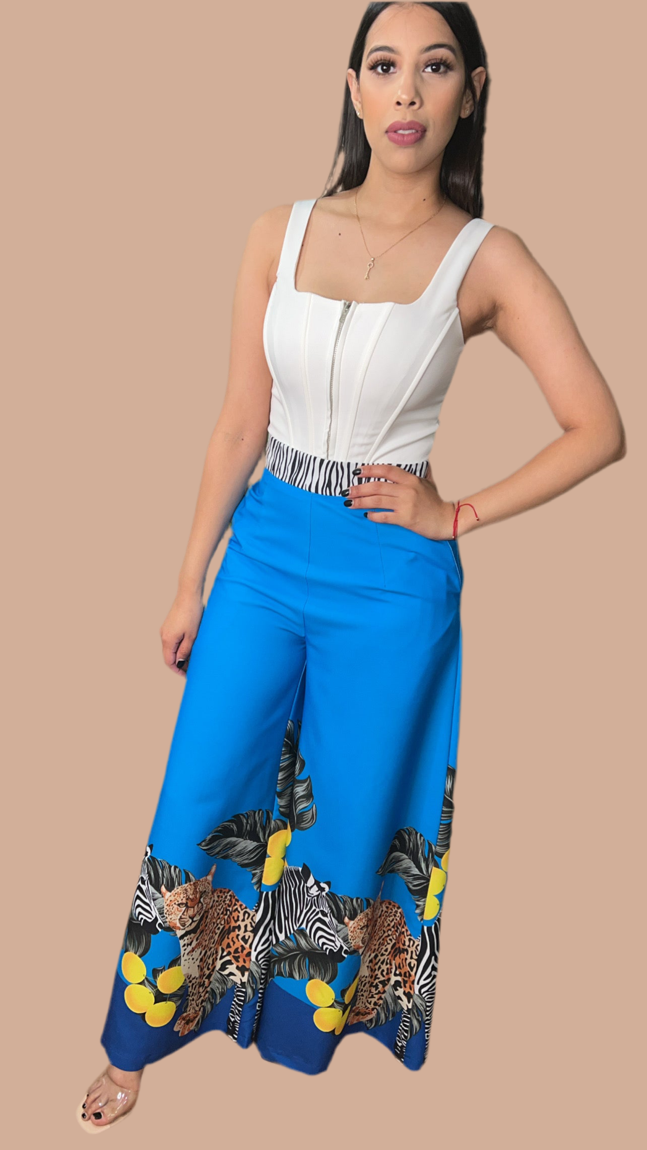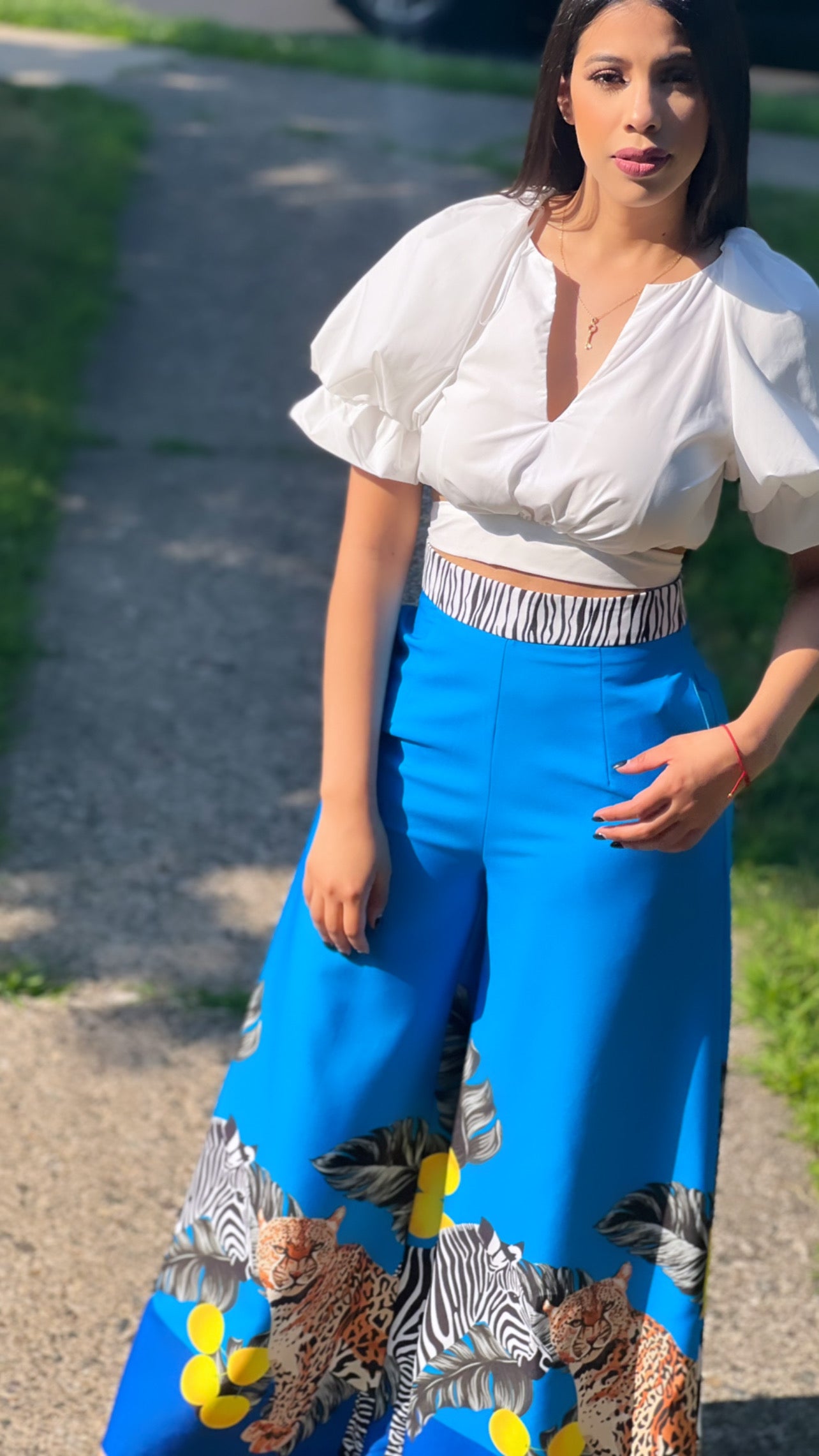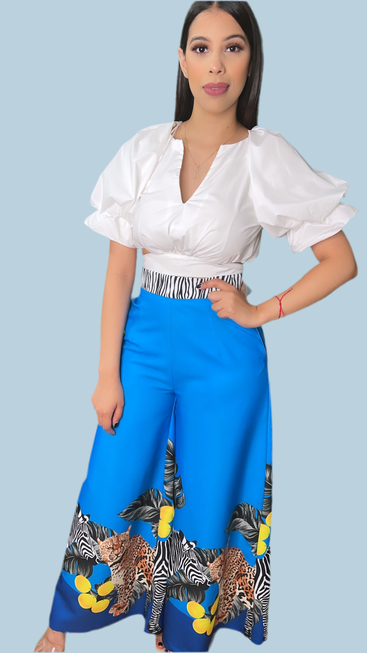 Women's Fashion Wide Leg Pants 2022 Summer Casual High Waist Printing Loose Bohemia Trousers Cropped Pants