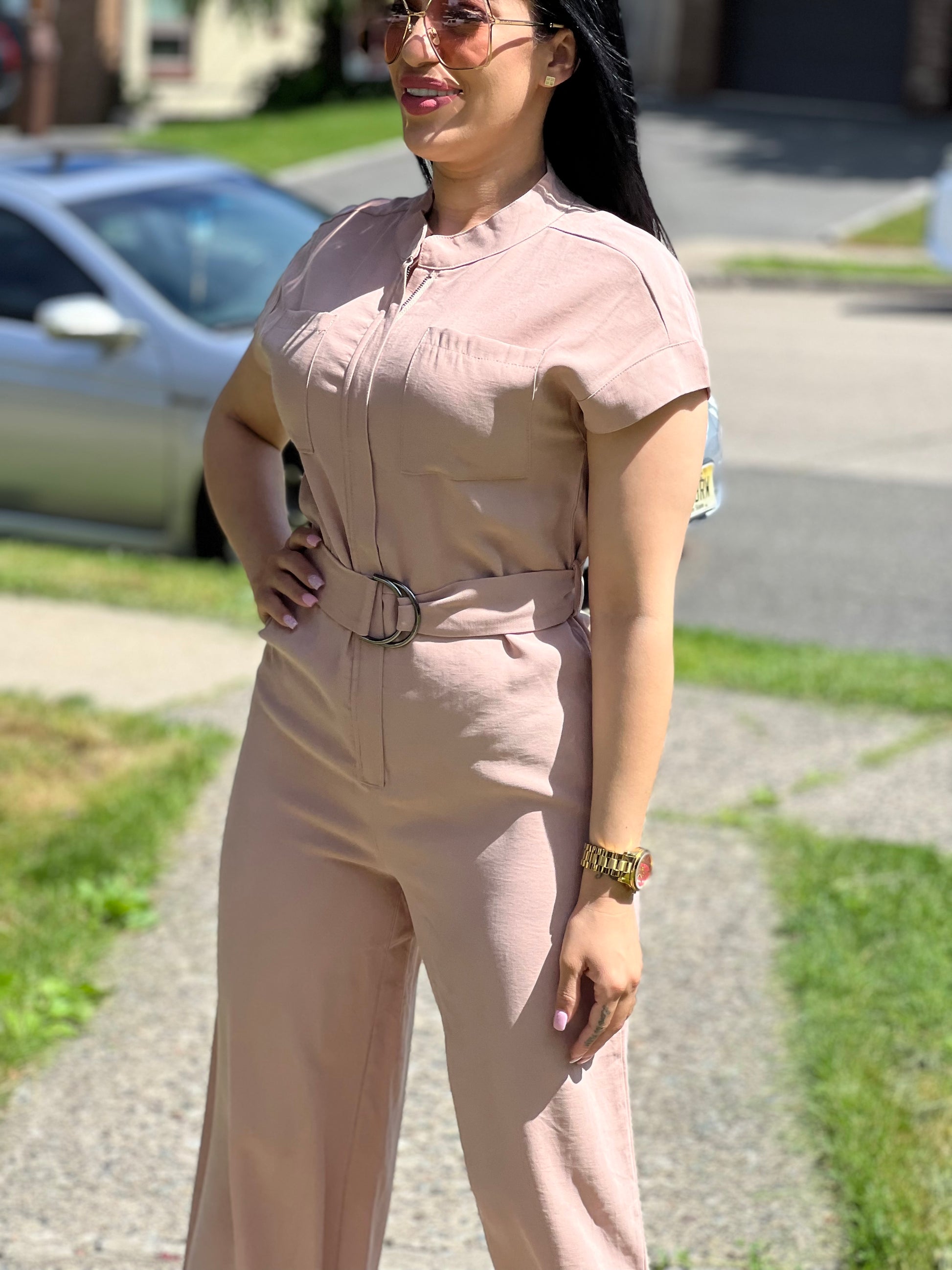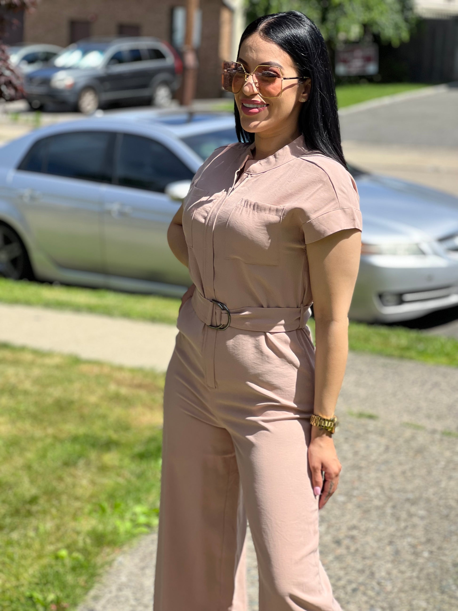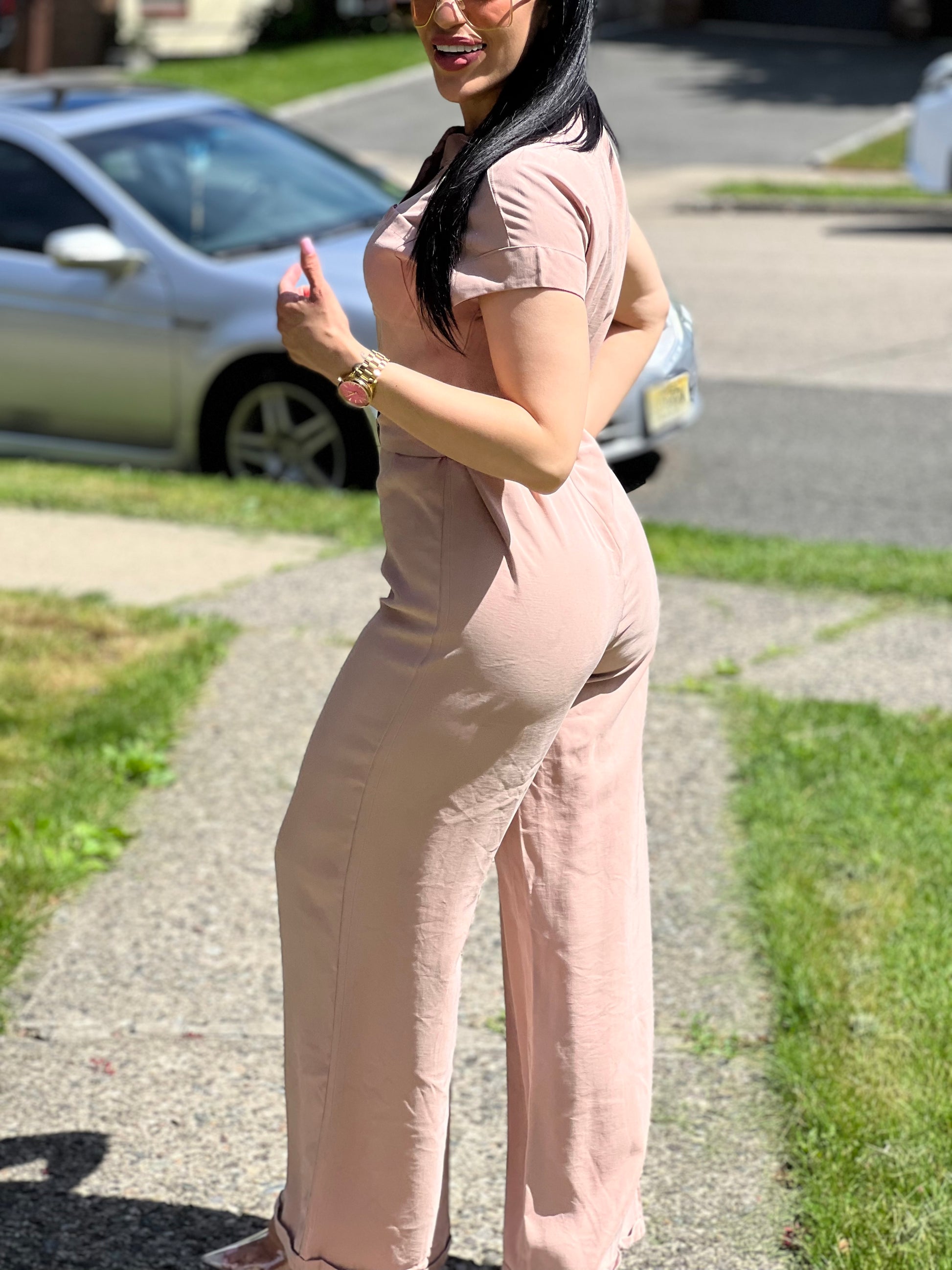 New Summer Fashion versatile turn-down collar short sleeve Jumpsuit waist bandage single breasted casual wide leg Jumpsuit