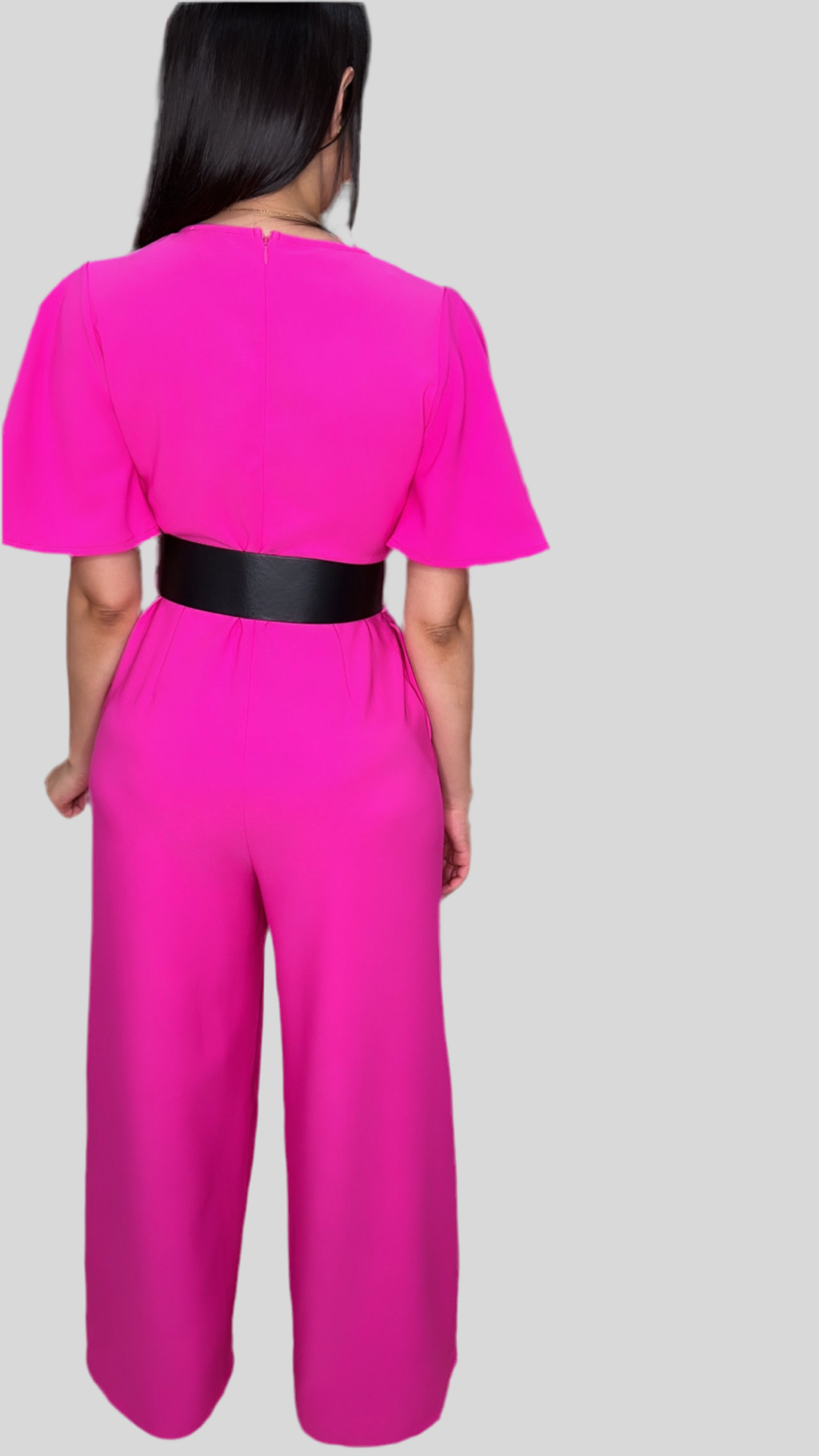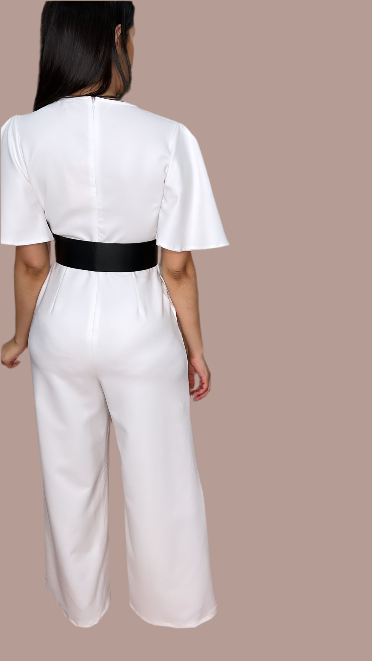 Spring Summer Fashion Printed V Neck Jumpsuits Streetwear Casual Short Sleeves Wide-leg Pants Commute Elegant Rompers For Women