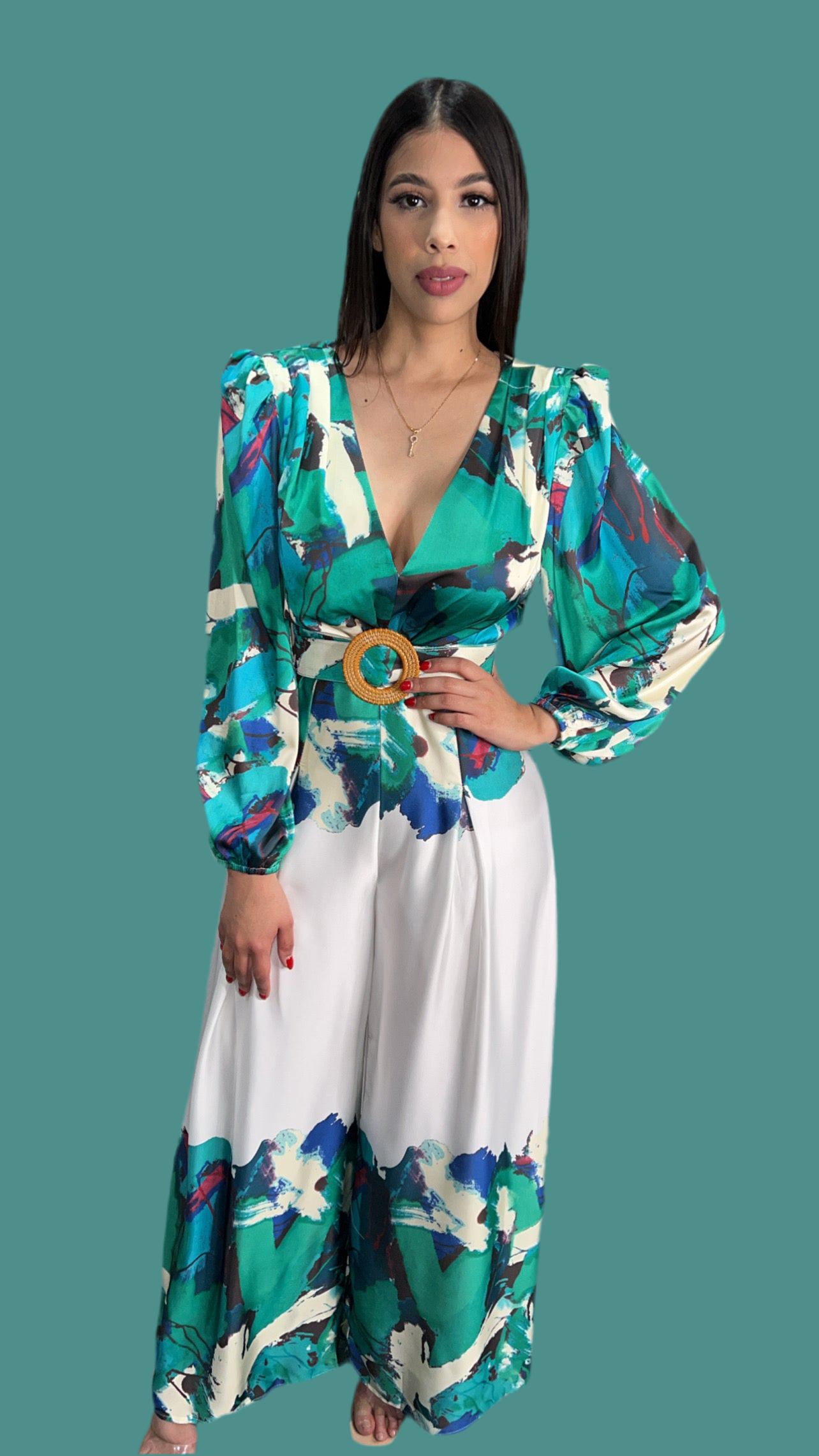 Women Elegant Printed Jumpsuit Fashion Long High Waist Wide Leg Pants Jumpsuit 2022 Female Fashion Bodysuits