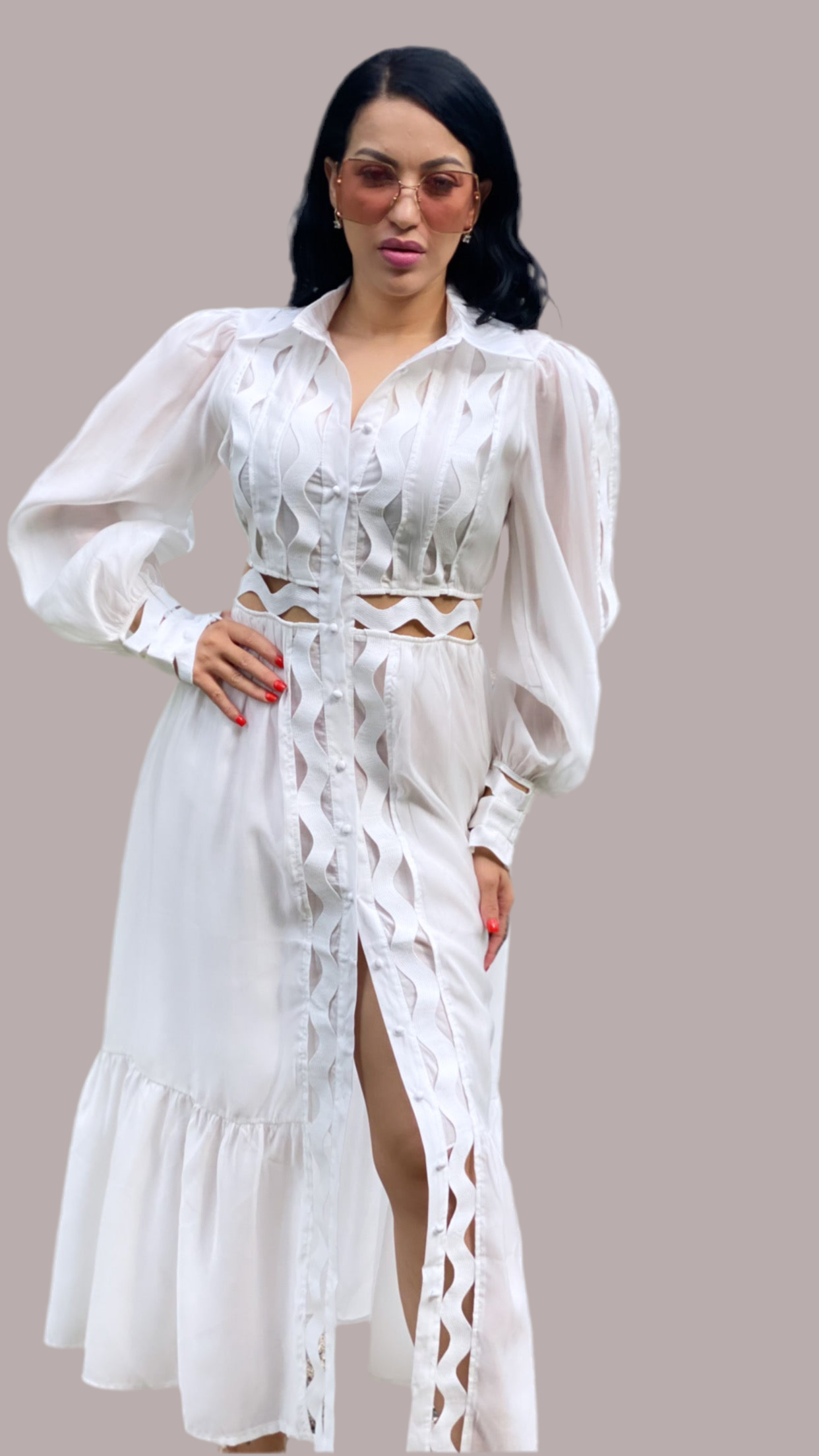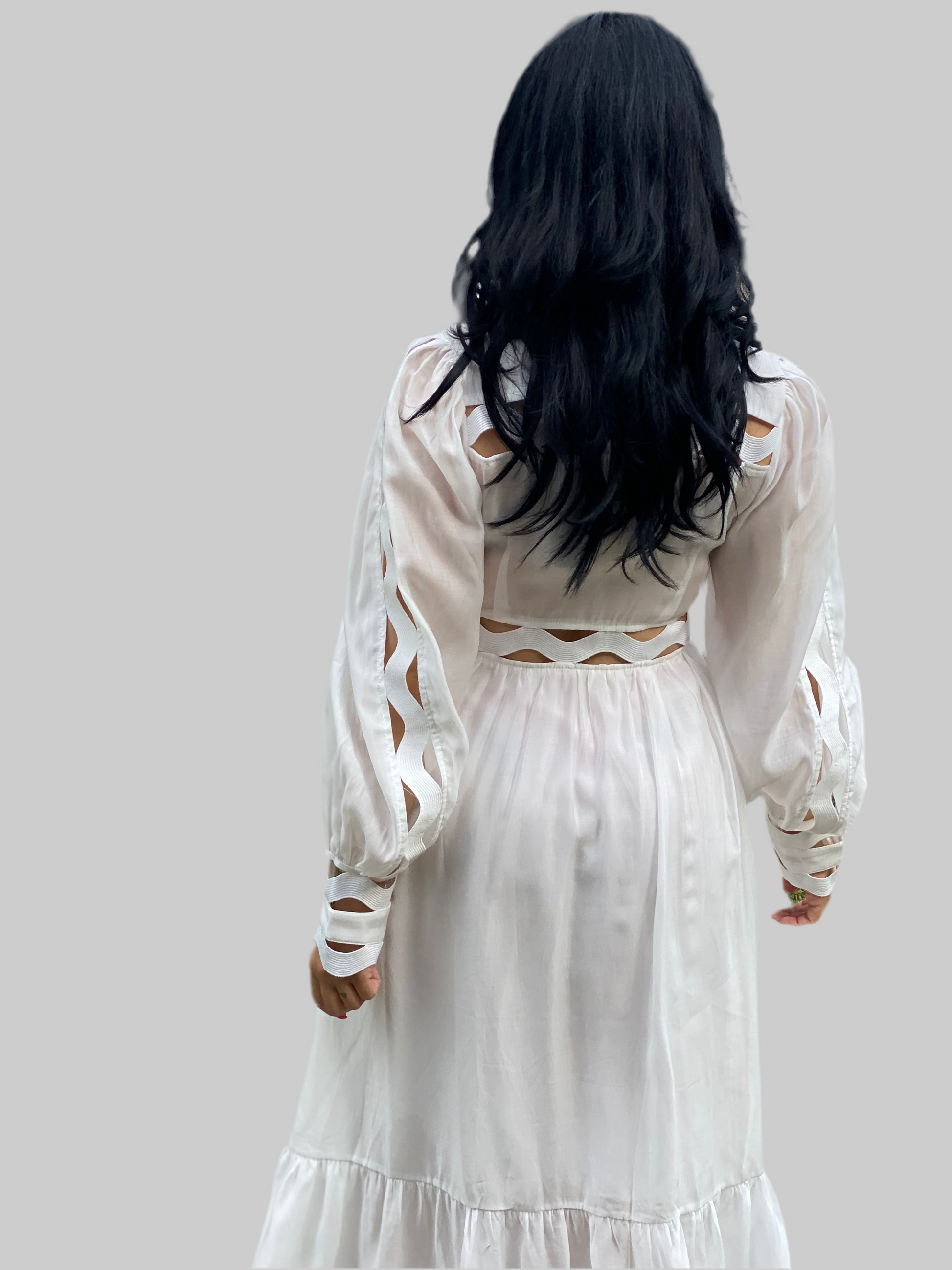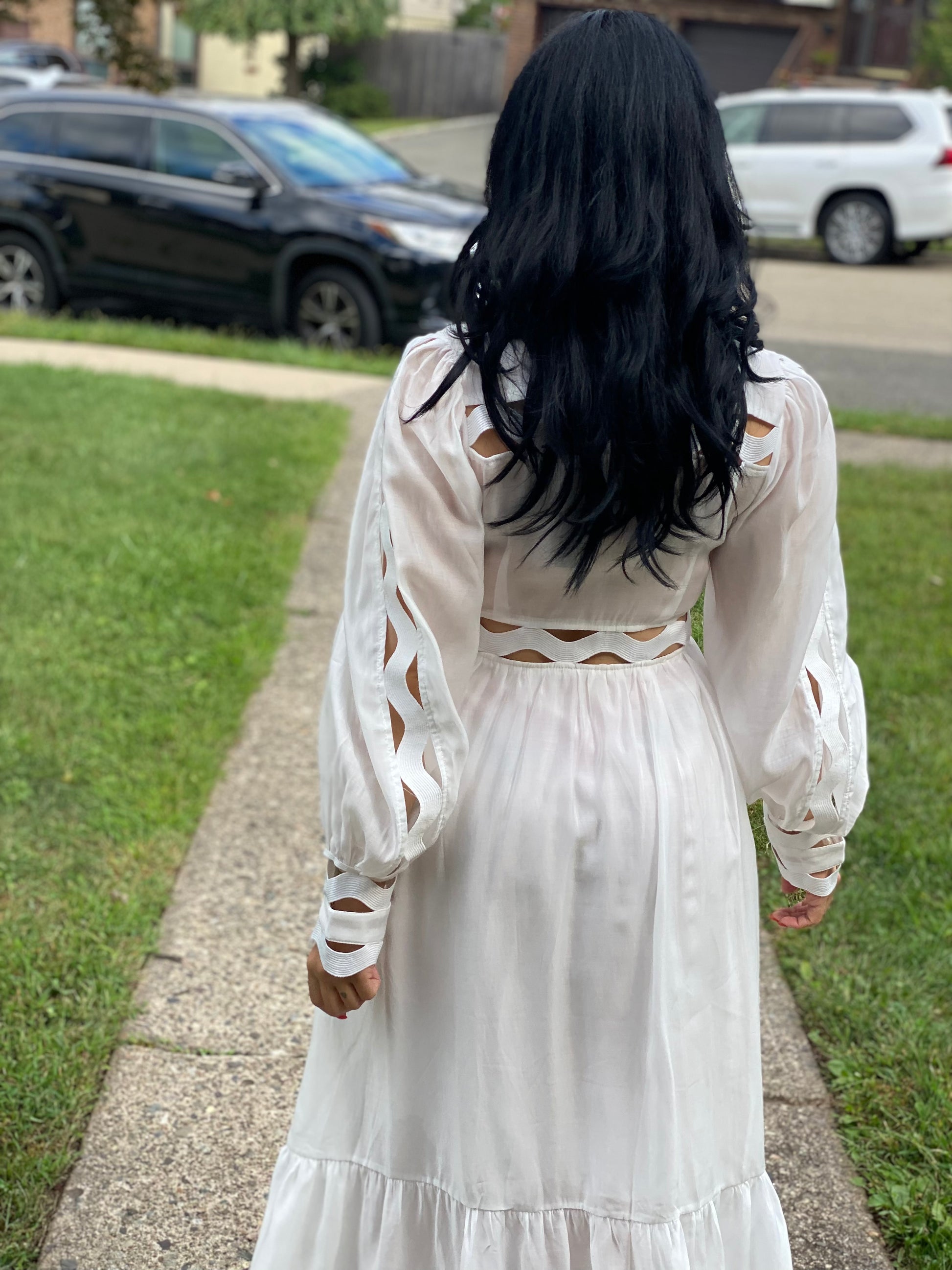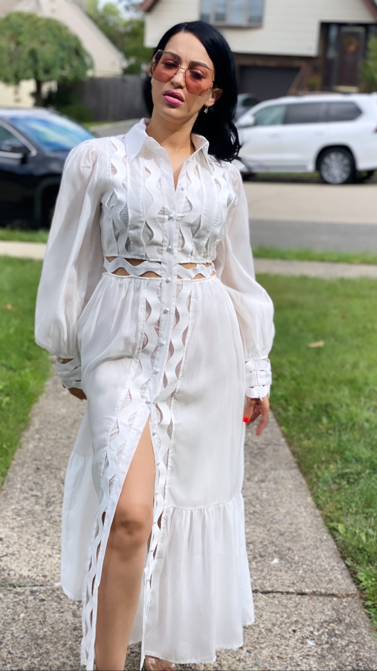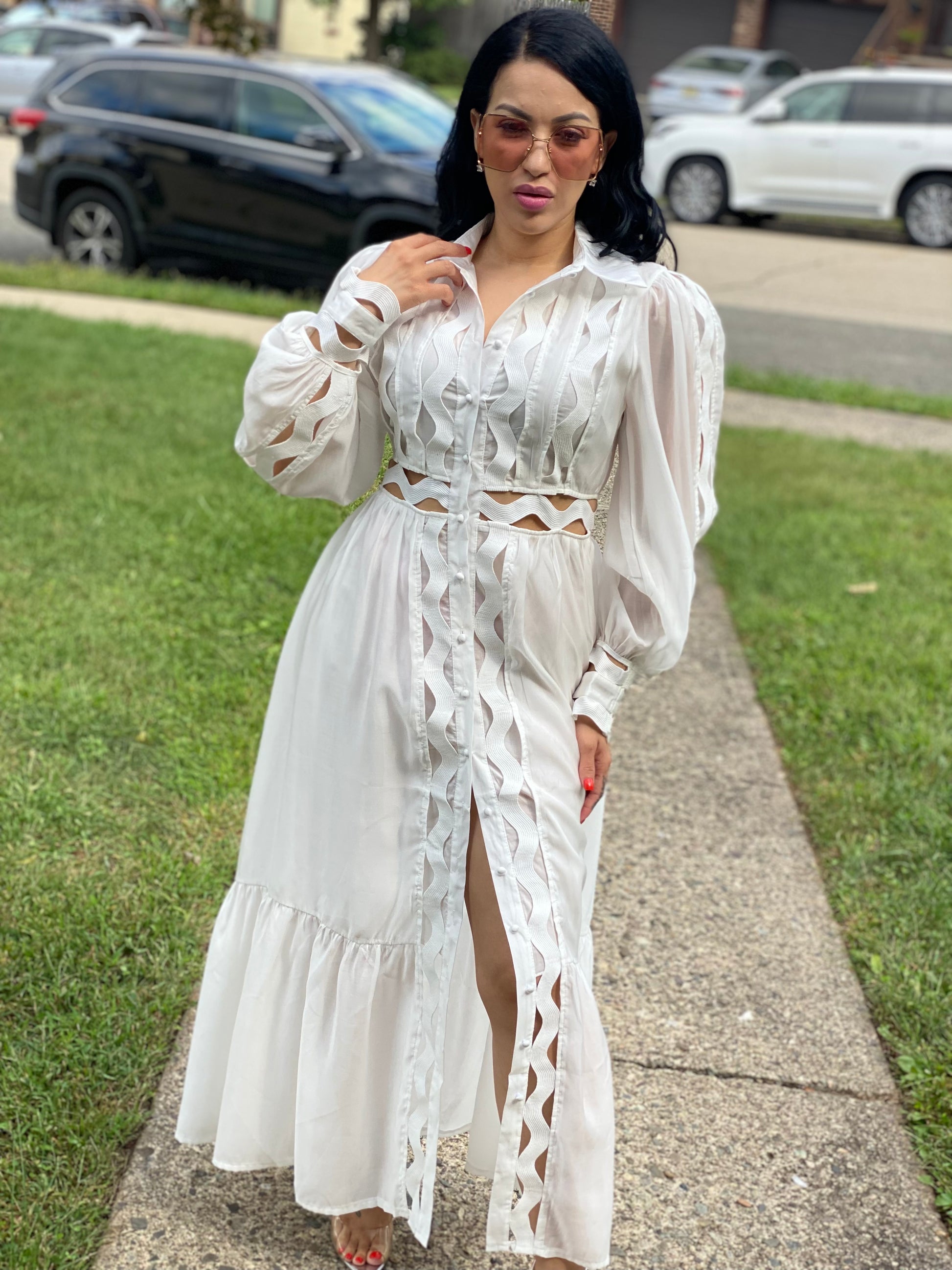 Runway High Quality Embroidered Carved Striped Hollow out Solid Long Dress Holiday Princess Dress