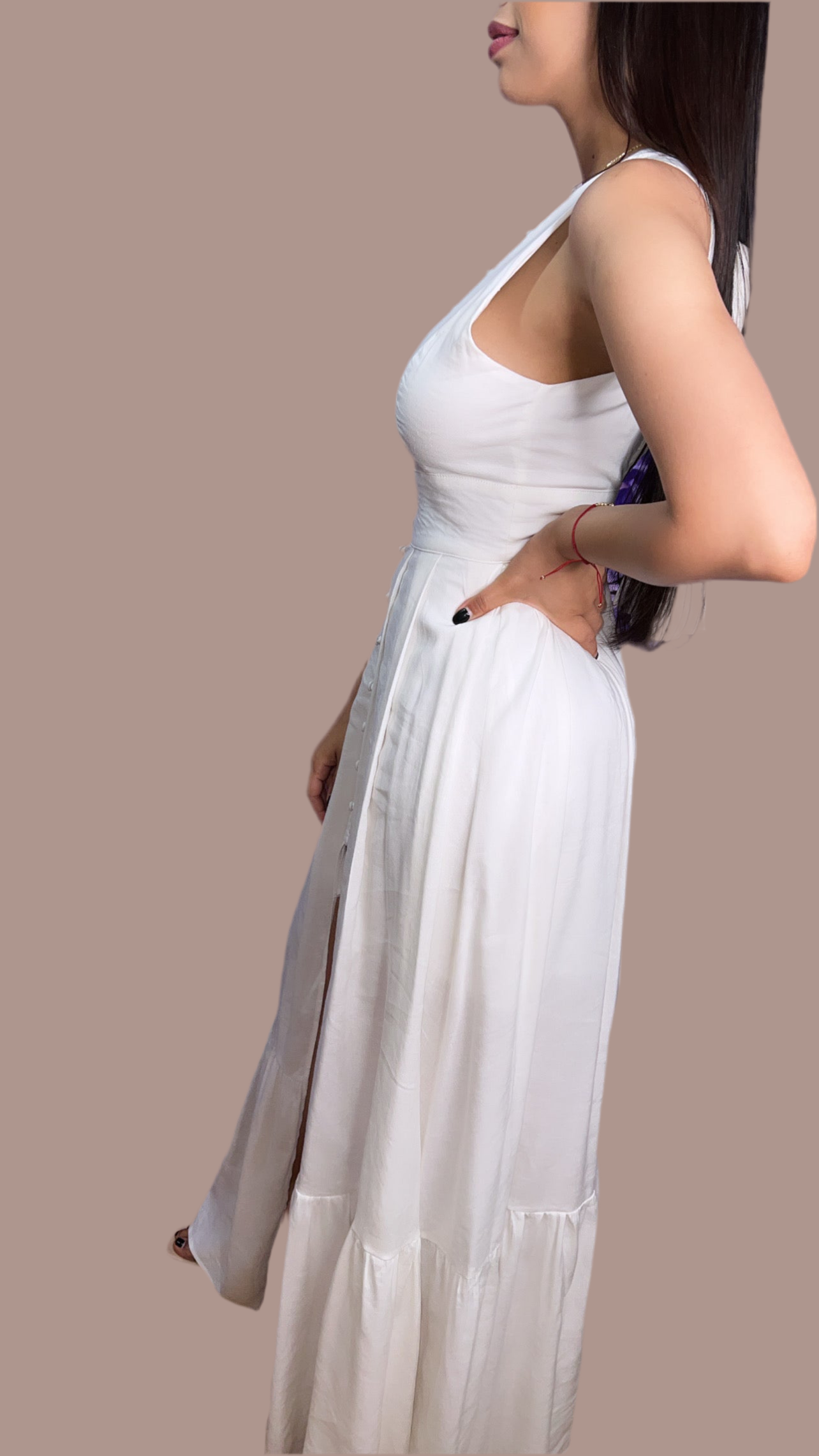 2022 Summer Women Fashion Designer Party Long Dress Sleeveless Shirring Ruffle Solid Color Shirts Style Dresses Vestidos