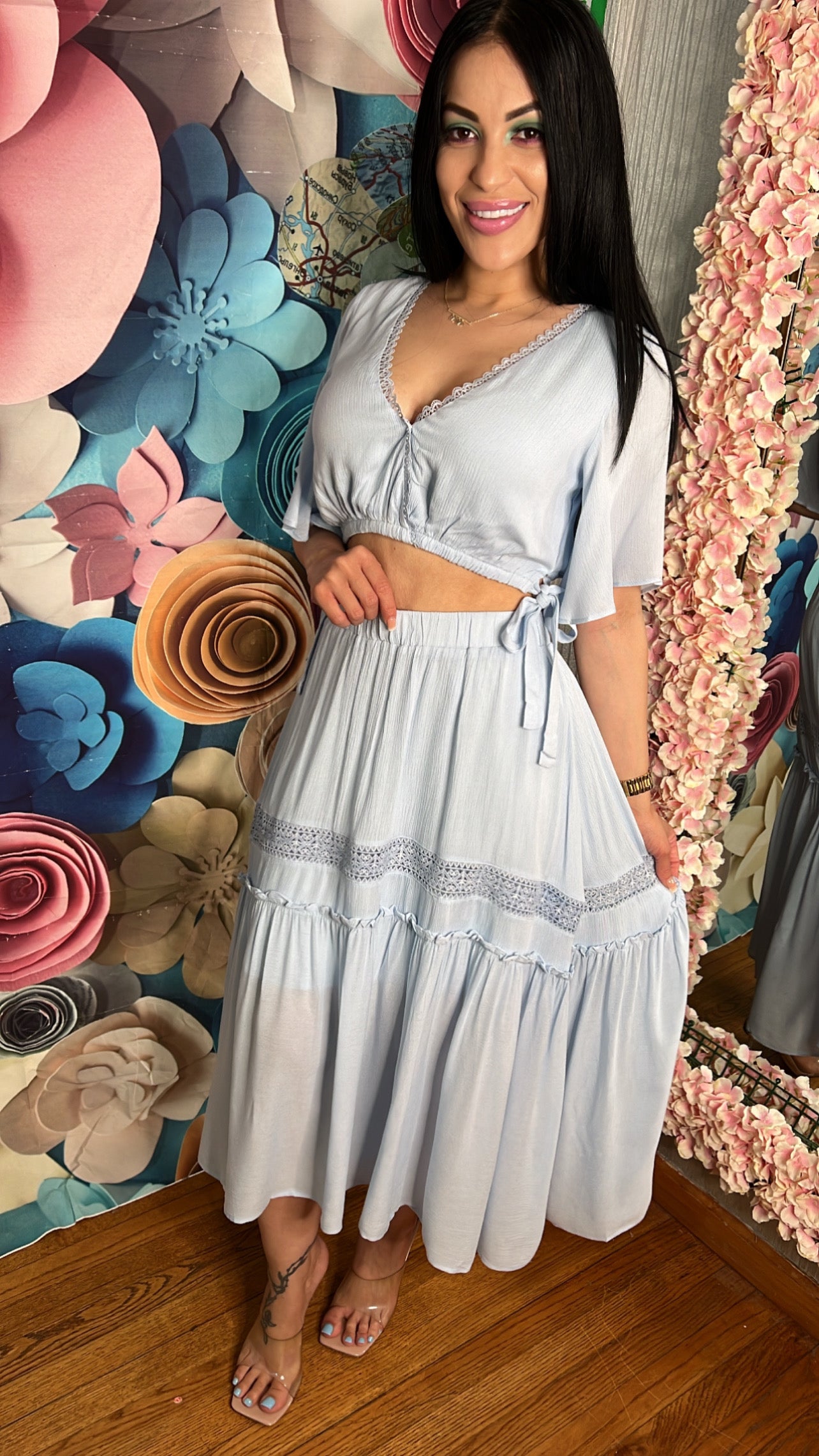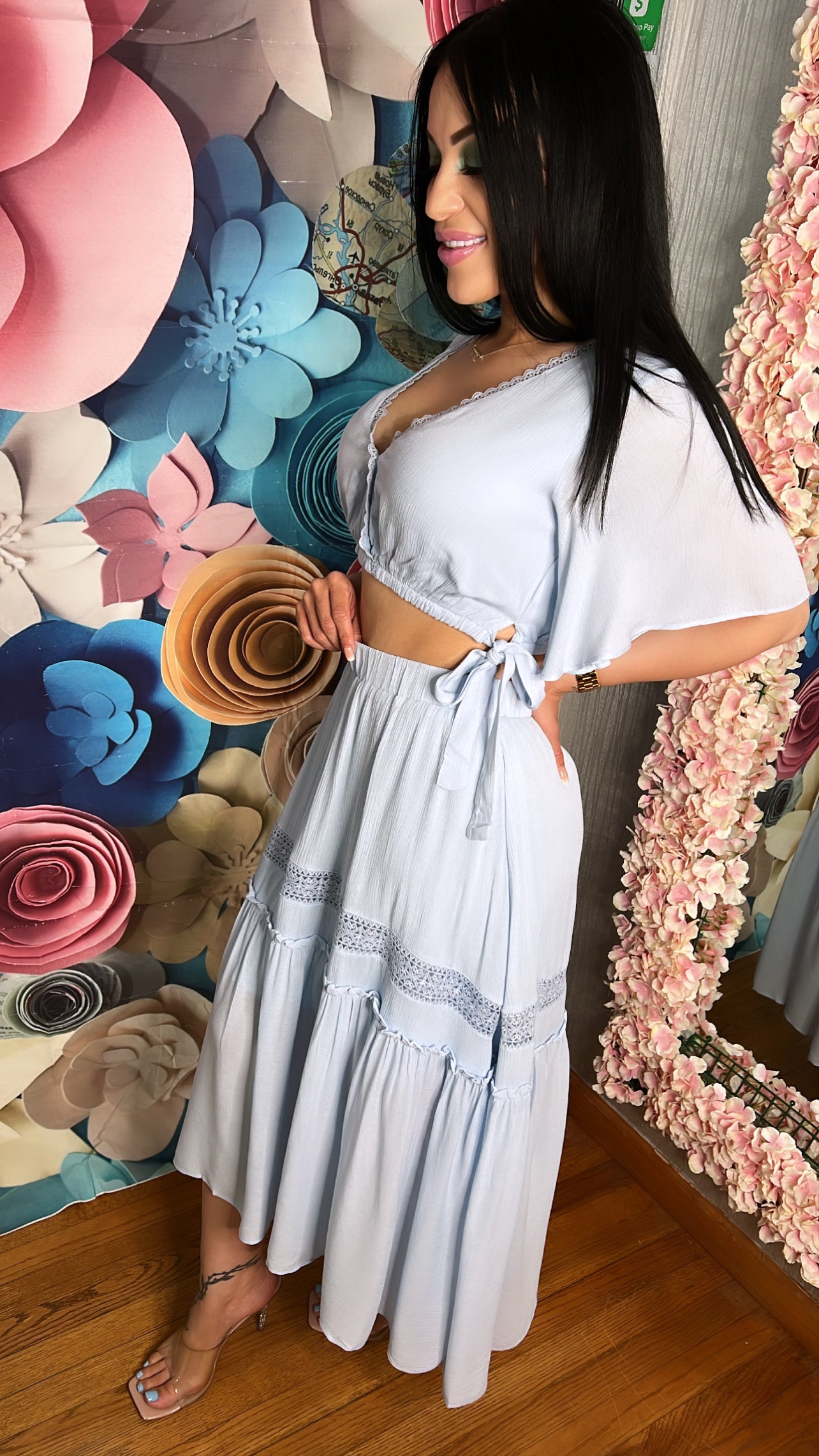 two piece women summer sets Puff short sleeve ruffle skirt sets Square collar elastic suits 2022 new