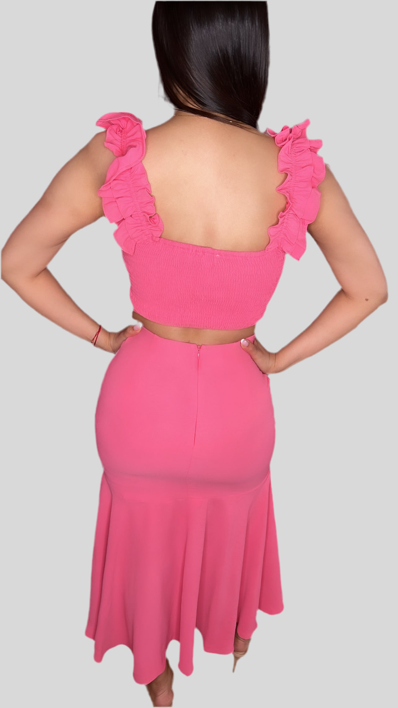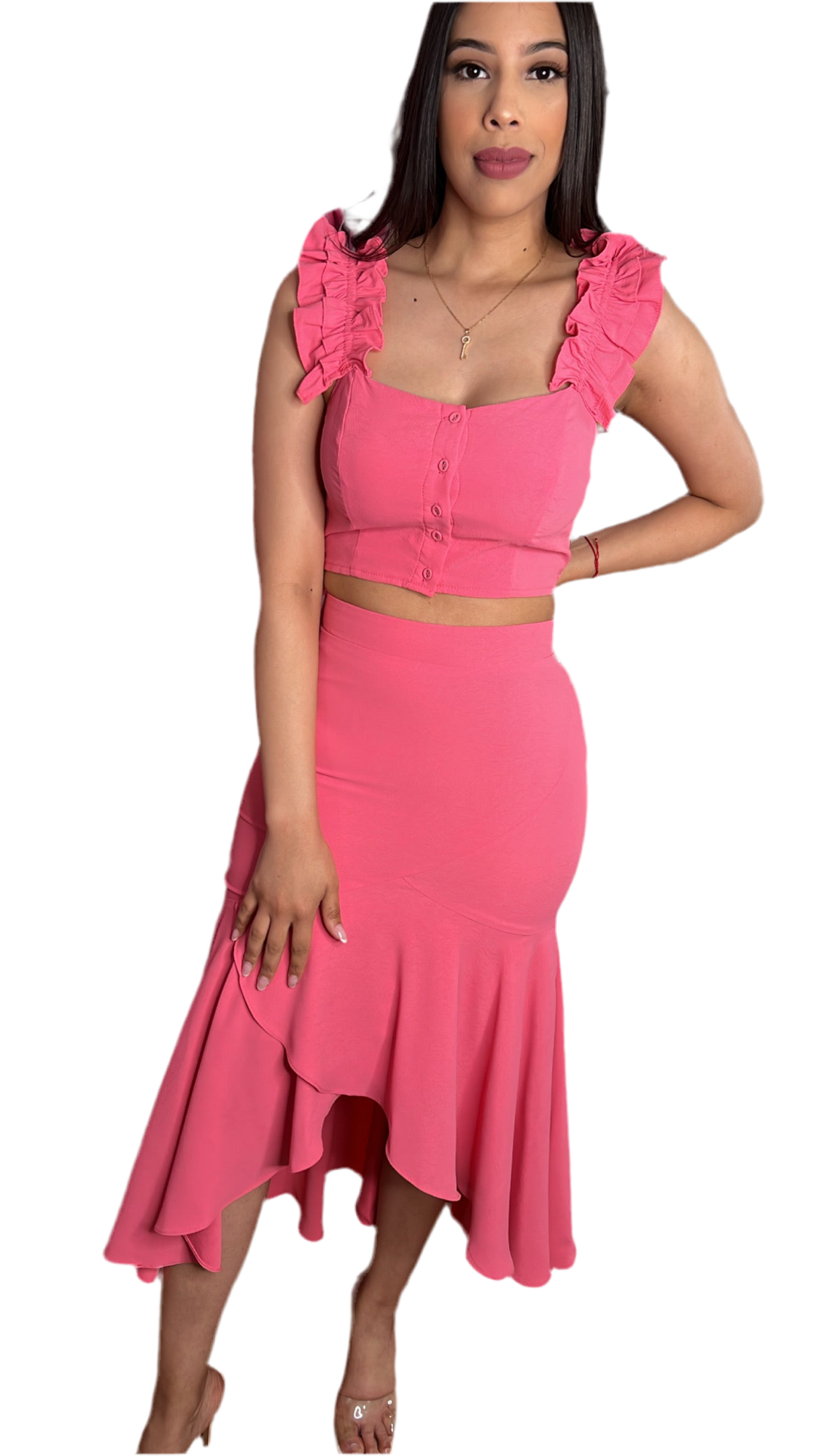 2 Pcs/Set Women Set Ruffle Summer Dress Eye-catching Top Skirt Set