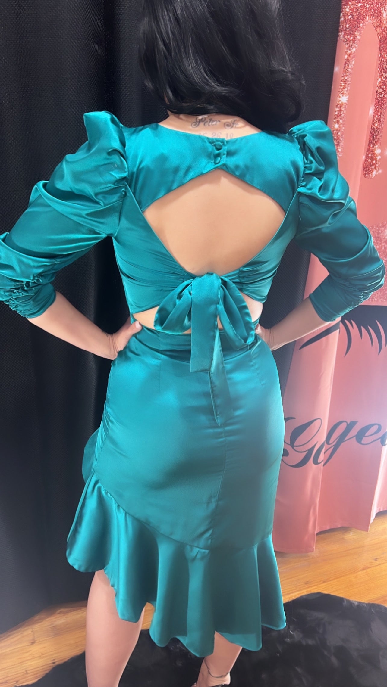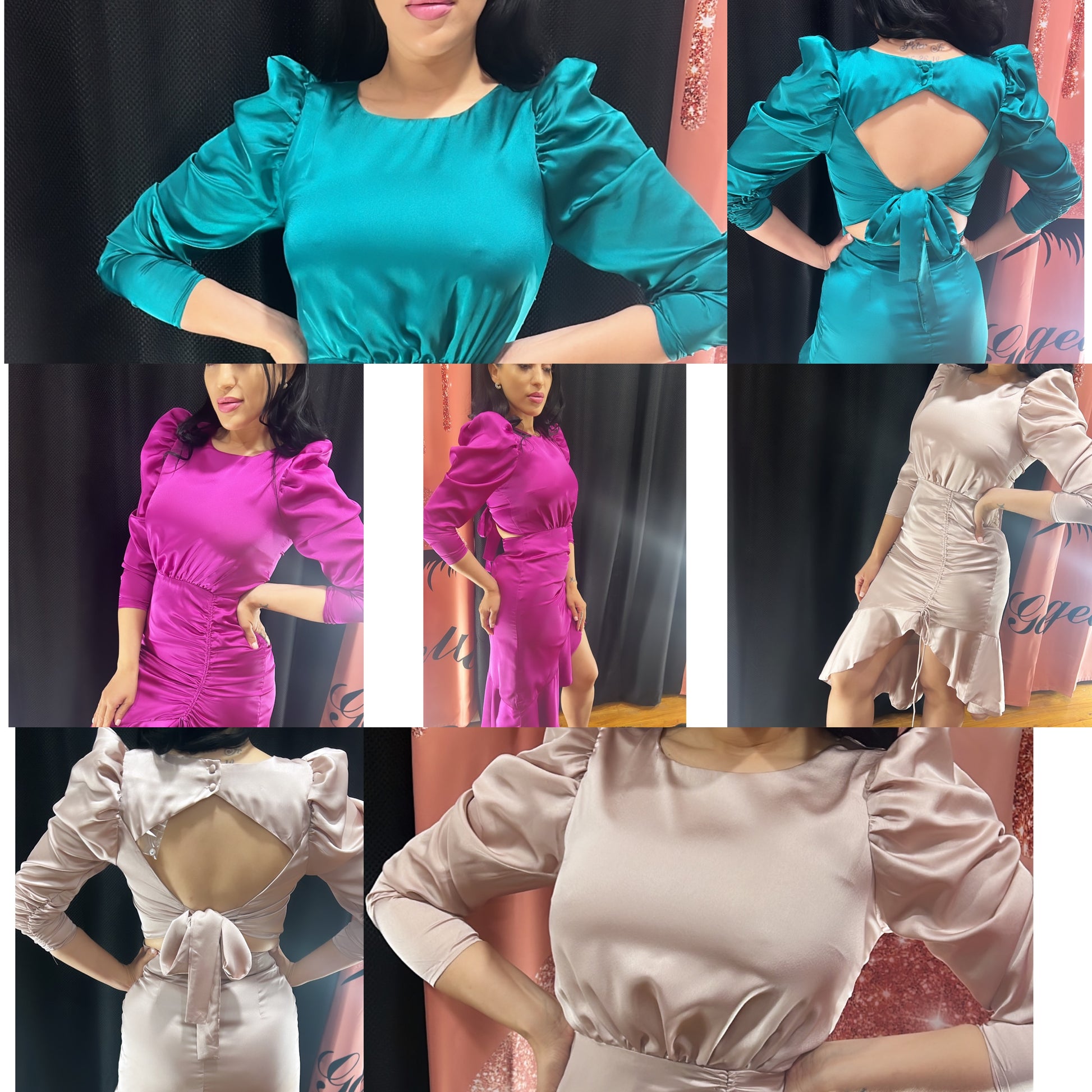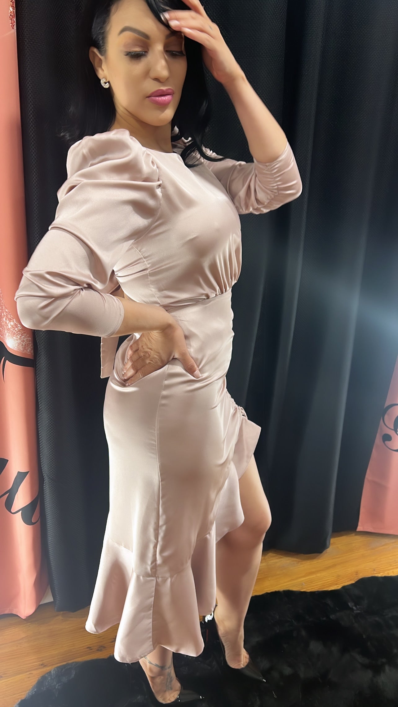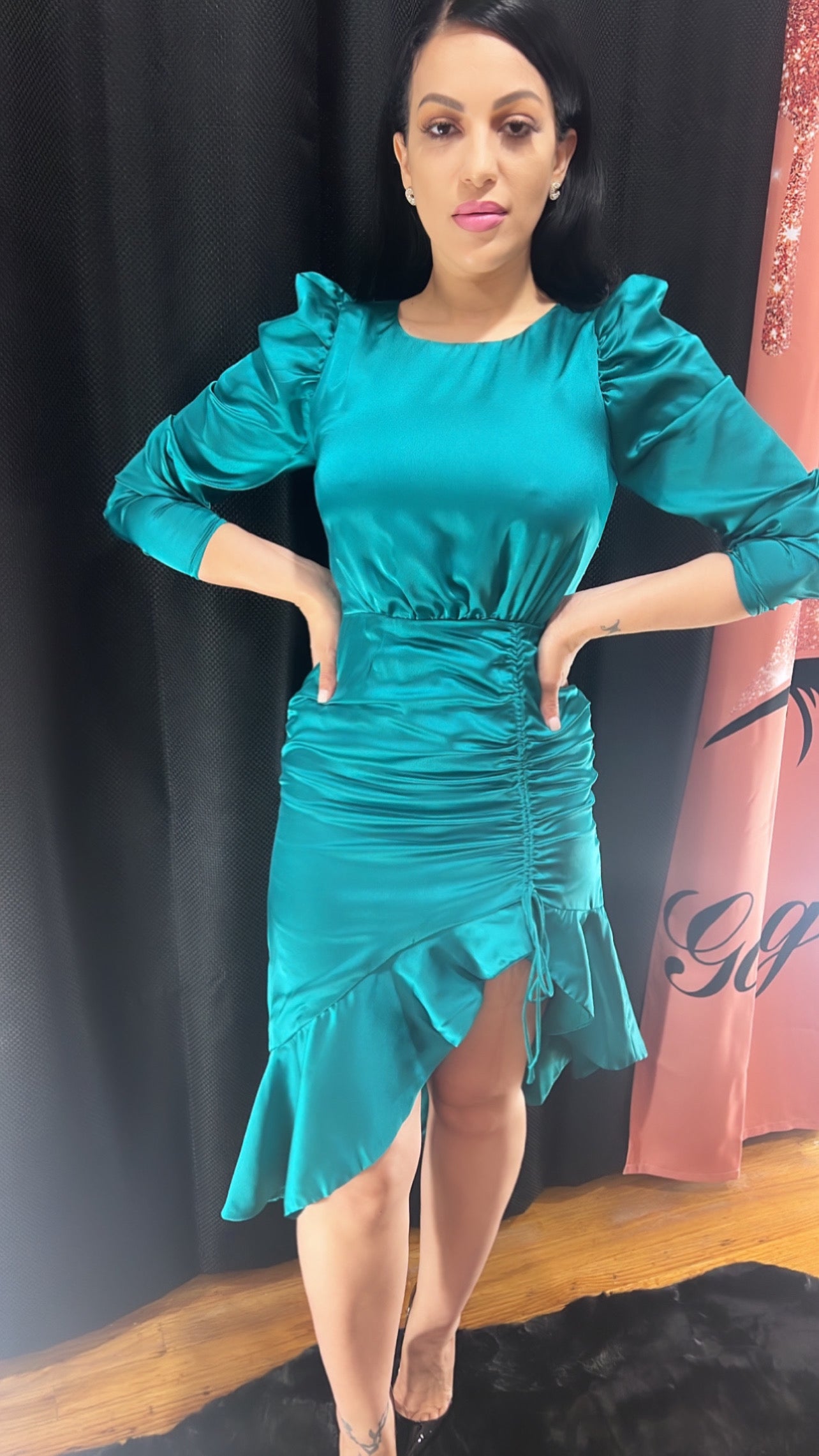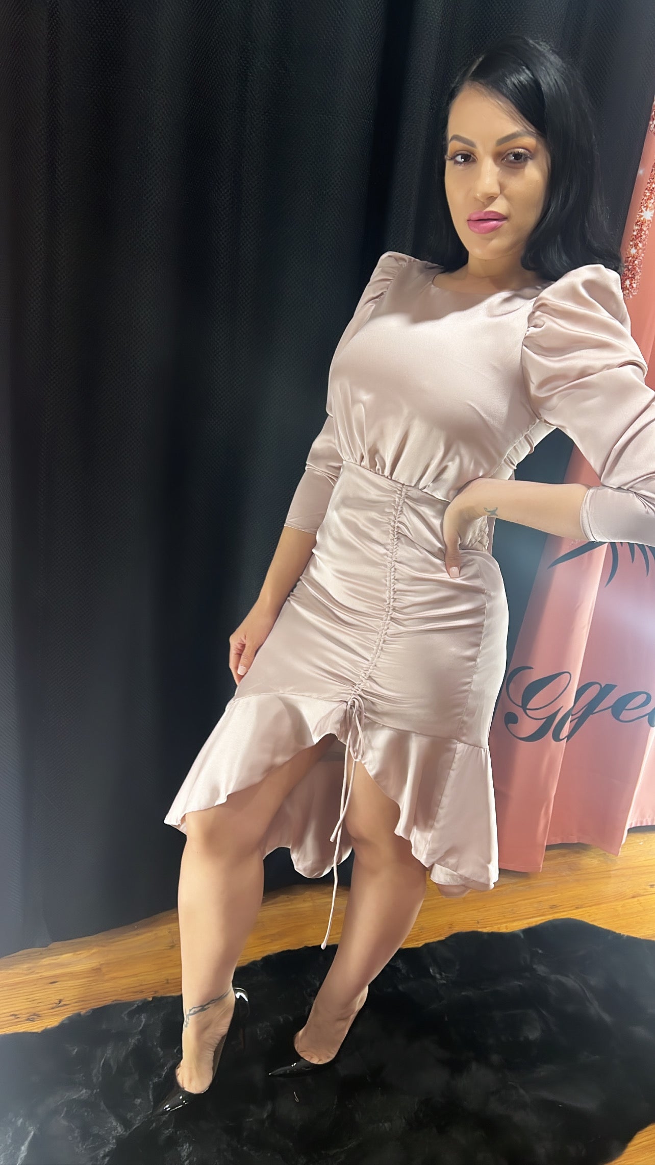 Drawstring Irregular Temperament Dress For Women Round Neck QuaterSleeve High Waist Casual Dresses Female Fashion