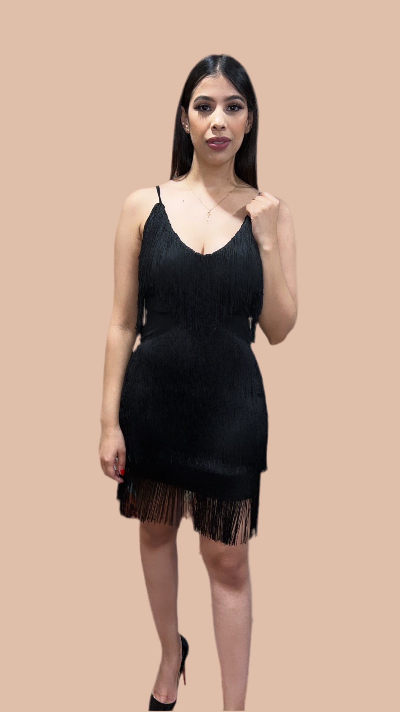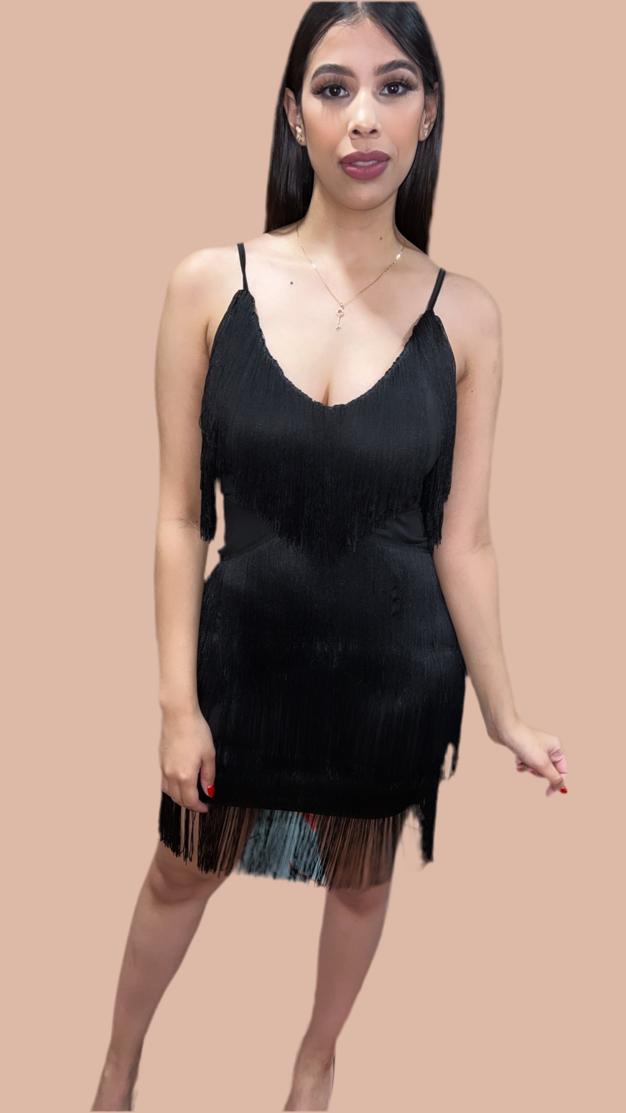Ladies Fashion Deep V-Neck Sling Fringe Dress Sexy Hot Girl Sleeveless Slim Short Dresses Women Party Club Bodycon Mini Robe