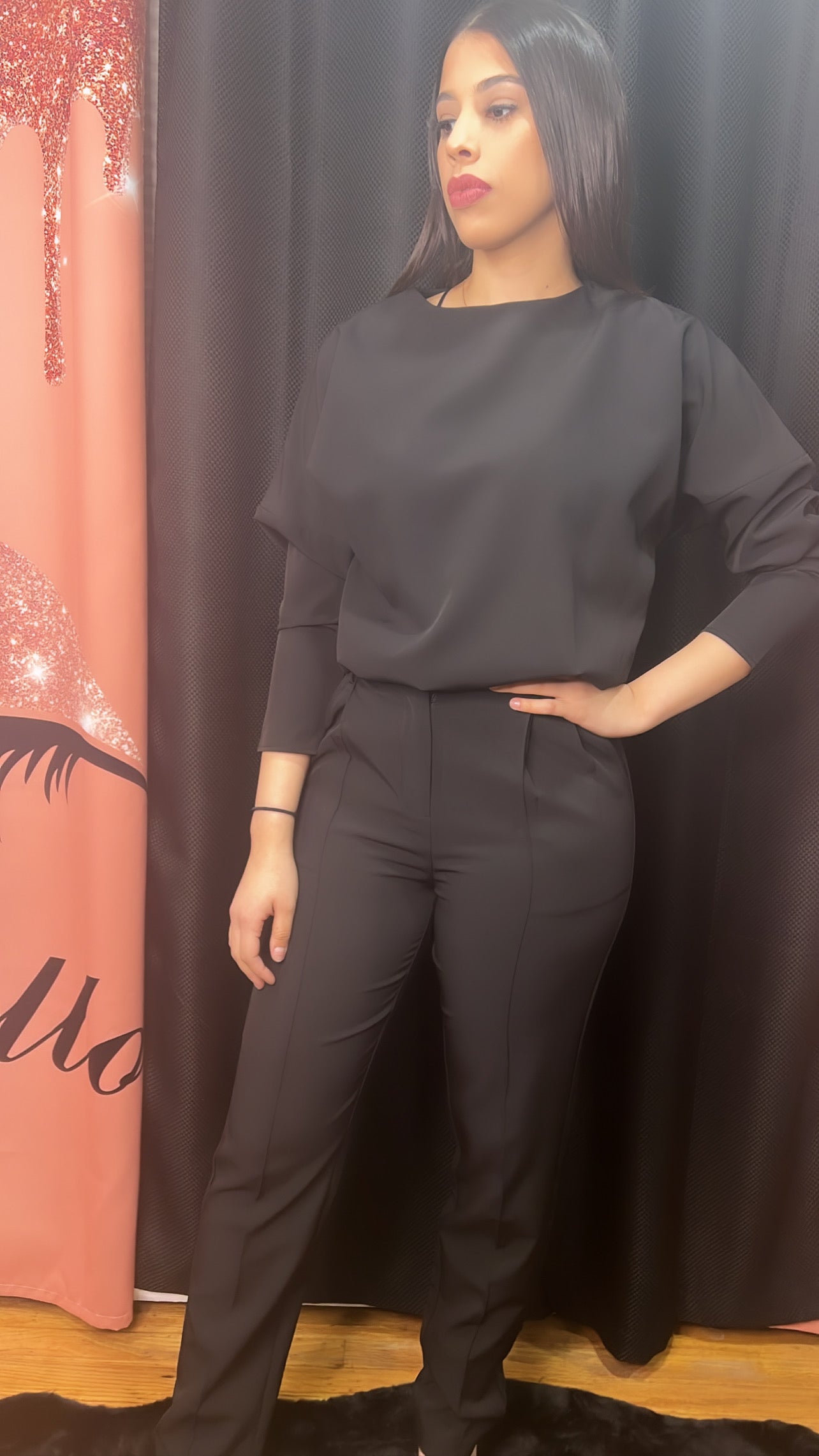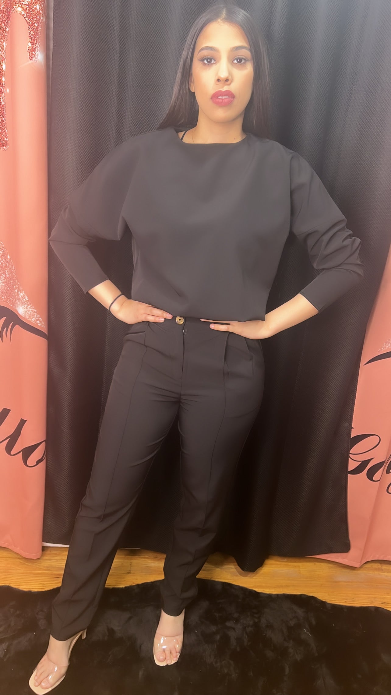 Puff Sleeve Two Piece Set Women Streetwear Casual Solid Top and High Waist Cago Pant Sets Fall Winter Outfits Matching Sets