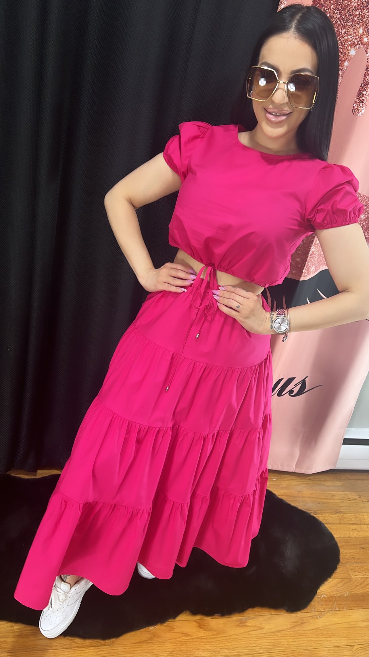 Women Sexy Slim Two Piece Set Print Crop Tops And Long Skirt Suit Lady Elegant 2 Piece Set