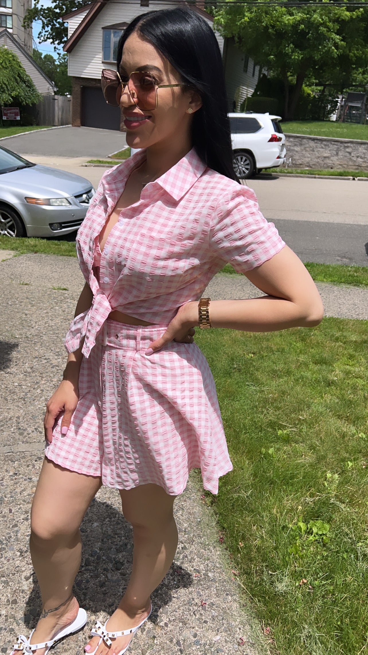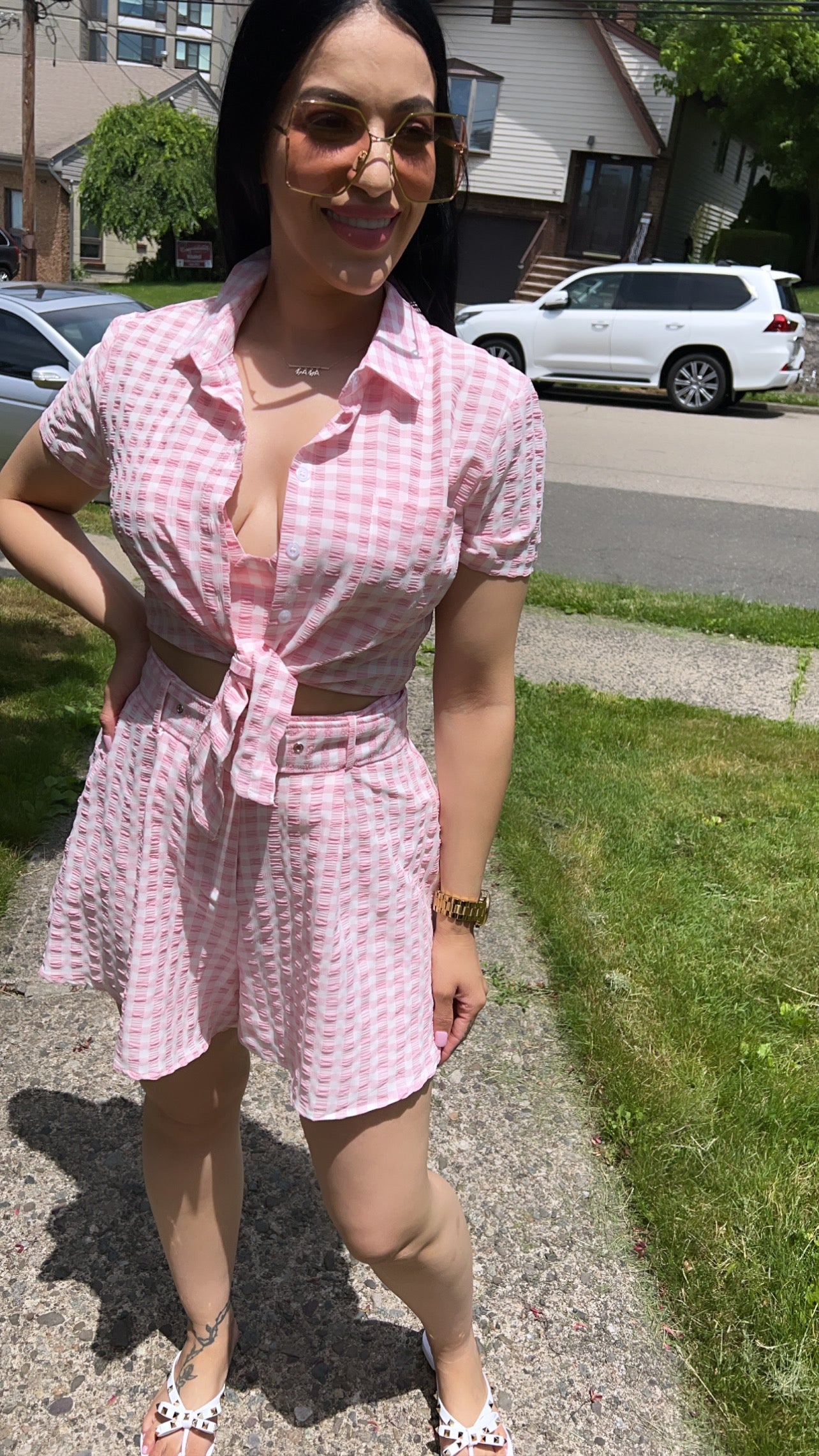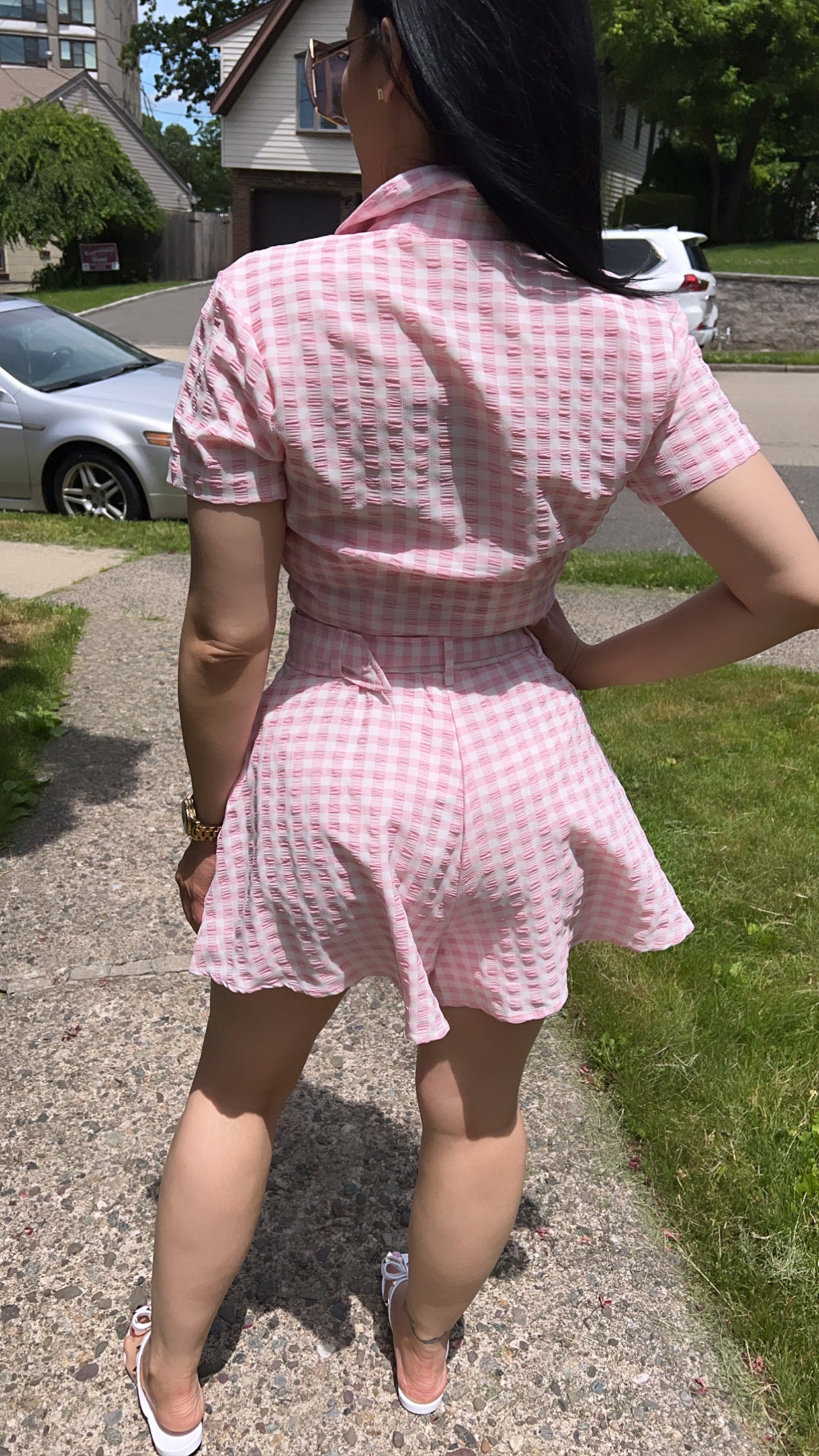 Summer Casual Fashion Women Slim Street Sexy Commuting Plaid Short Sleeve One Piece Two Pieces Set