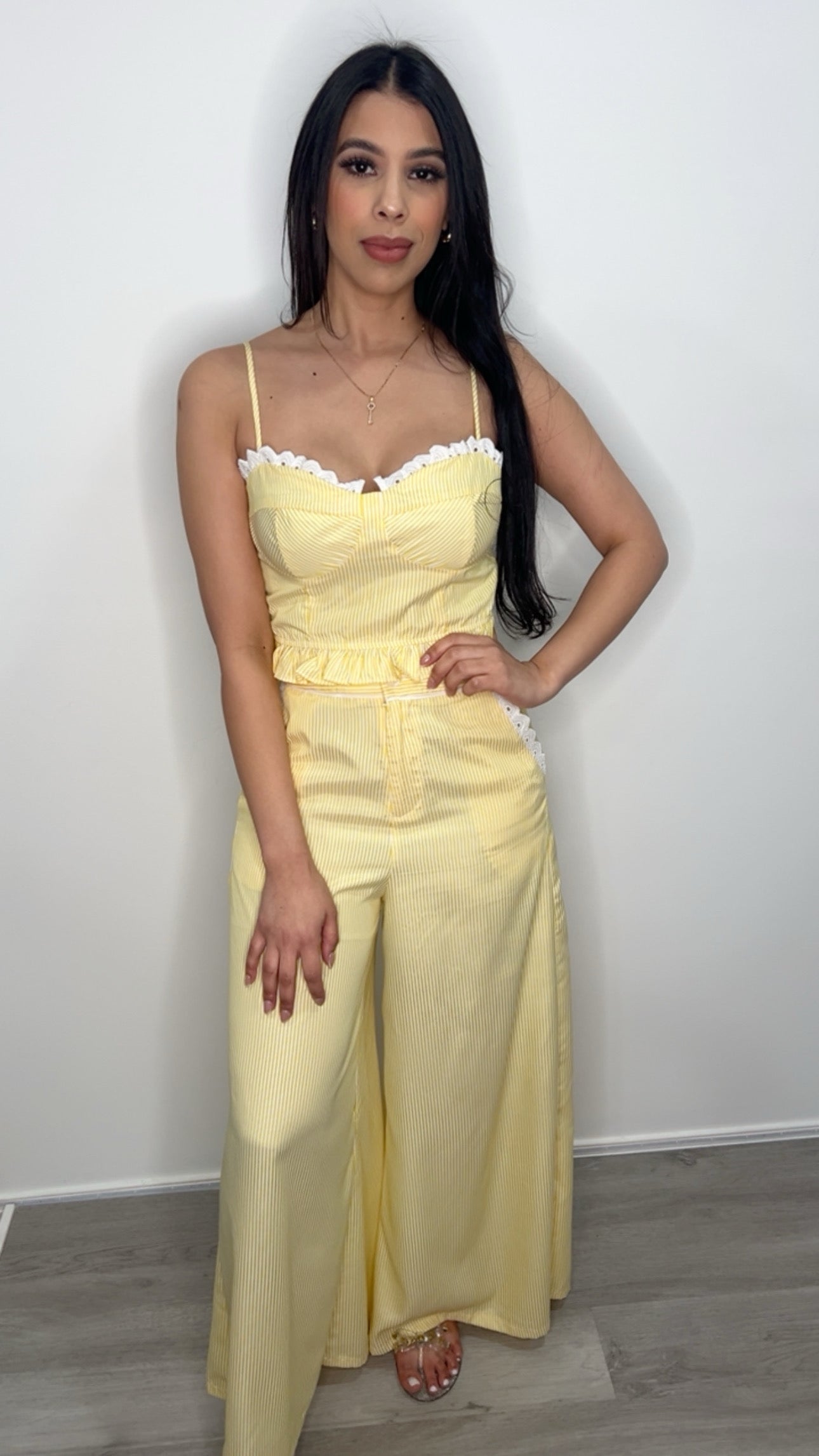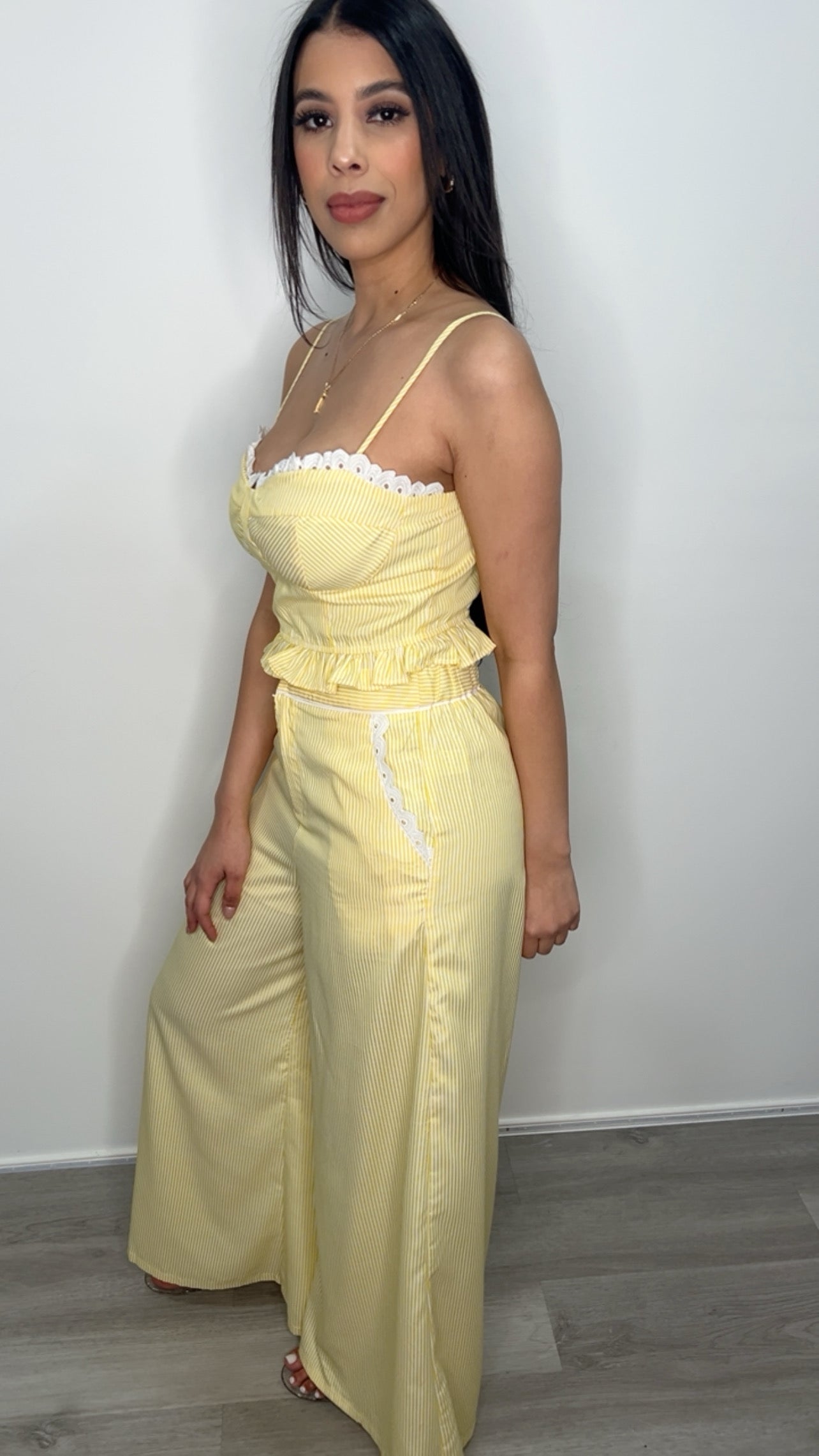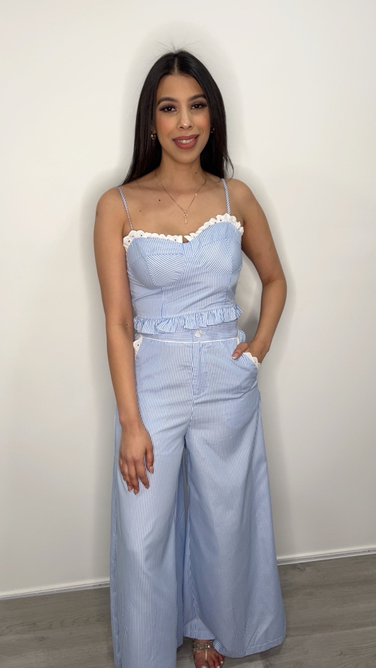 Imcute Women Sexy 2 Piece Outfits Stripe Tie Up Halter Neck Sleeveless Backless Cut Out Top and Loose Pants Set Clubwear