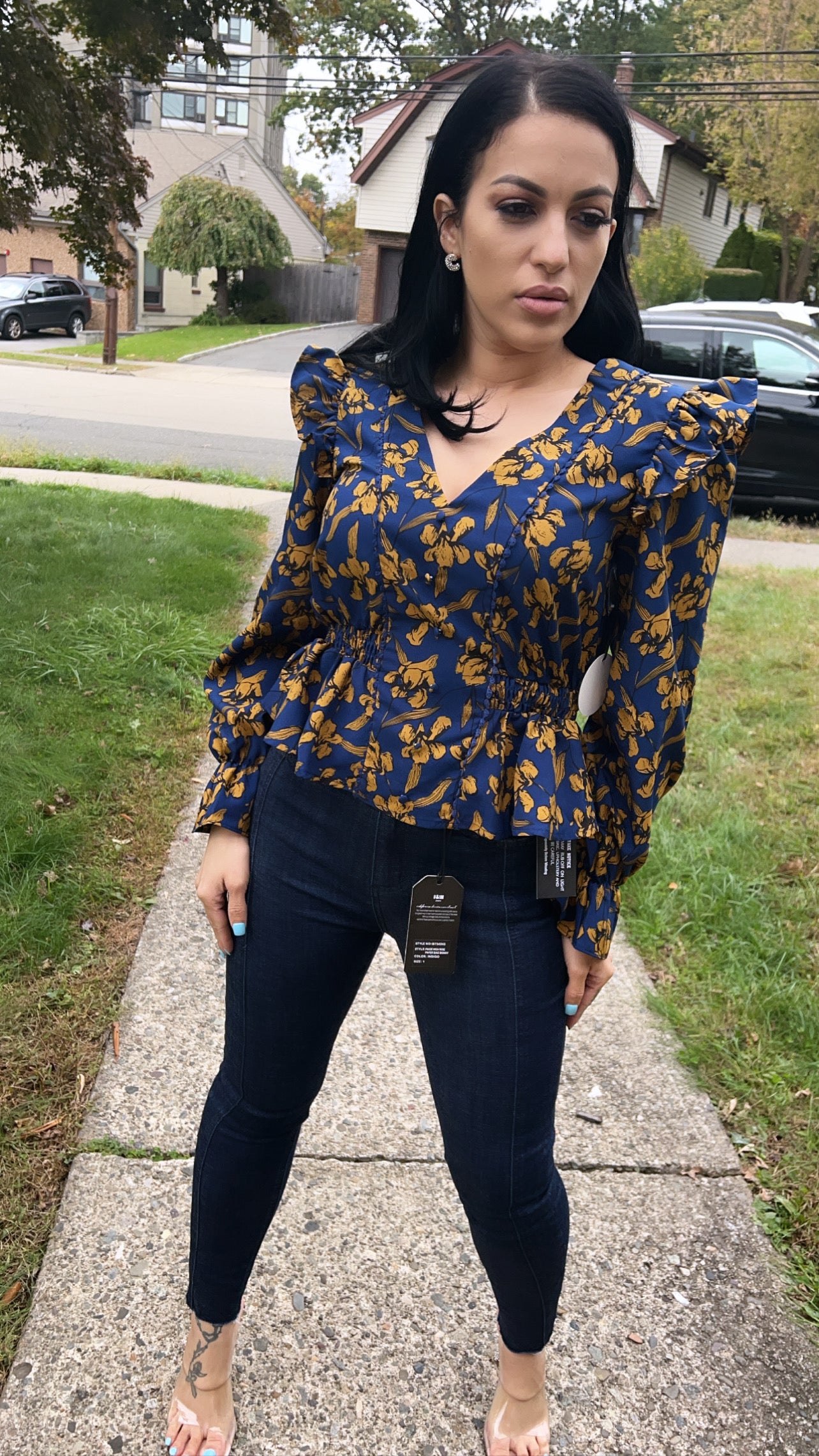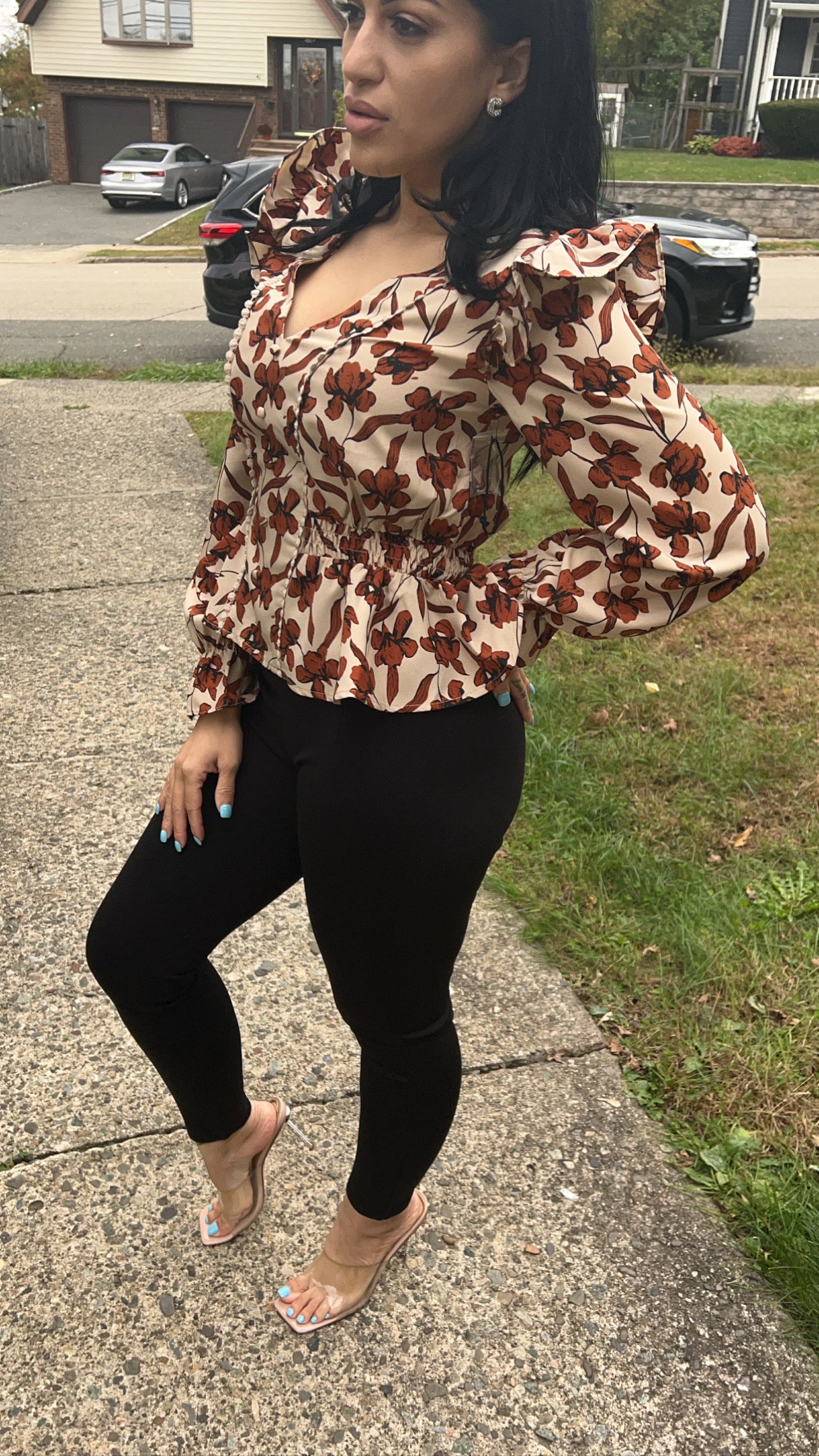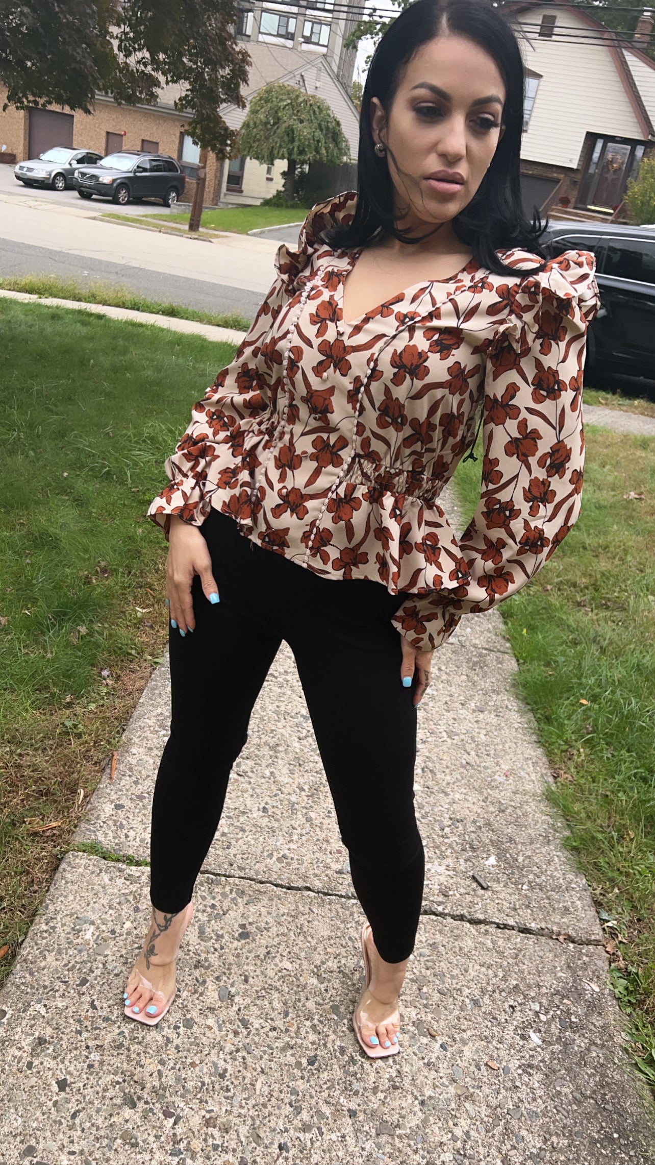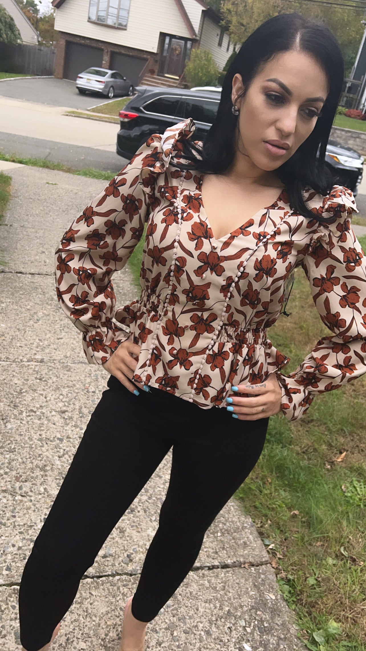 Vintage Printed Asymmetrical Blouses Shirts Women Puff Sleeve V-neck Tops Elegant Fashion Ladies Blusas Mujer