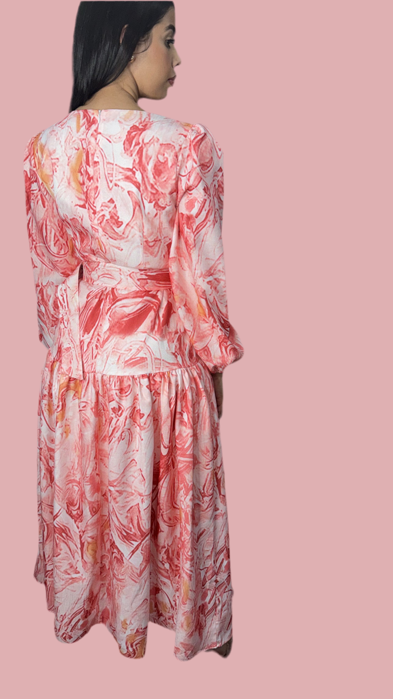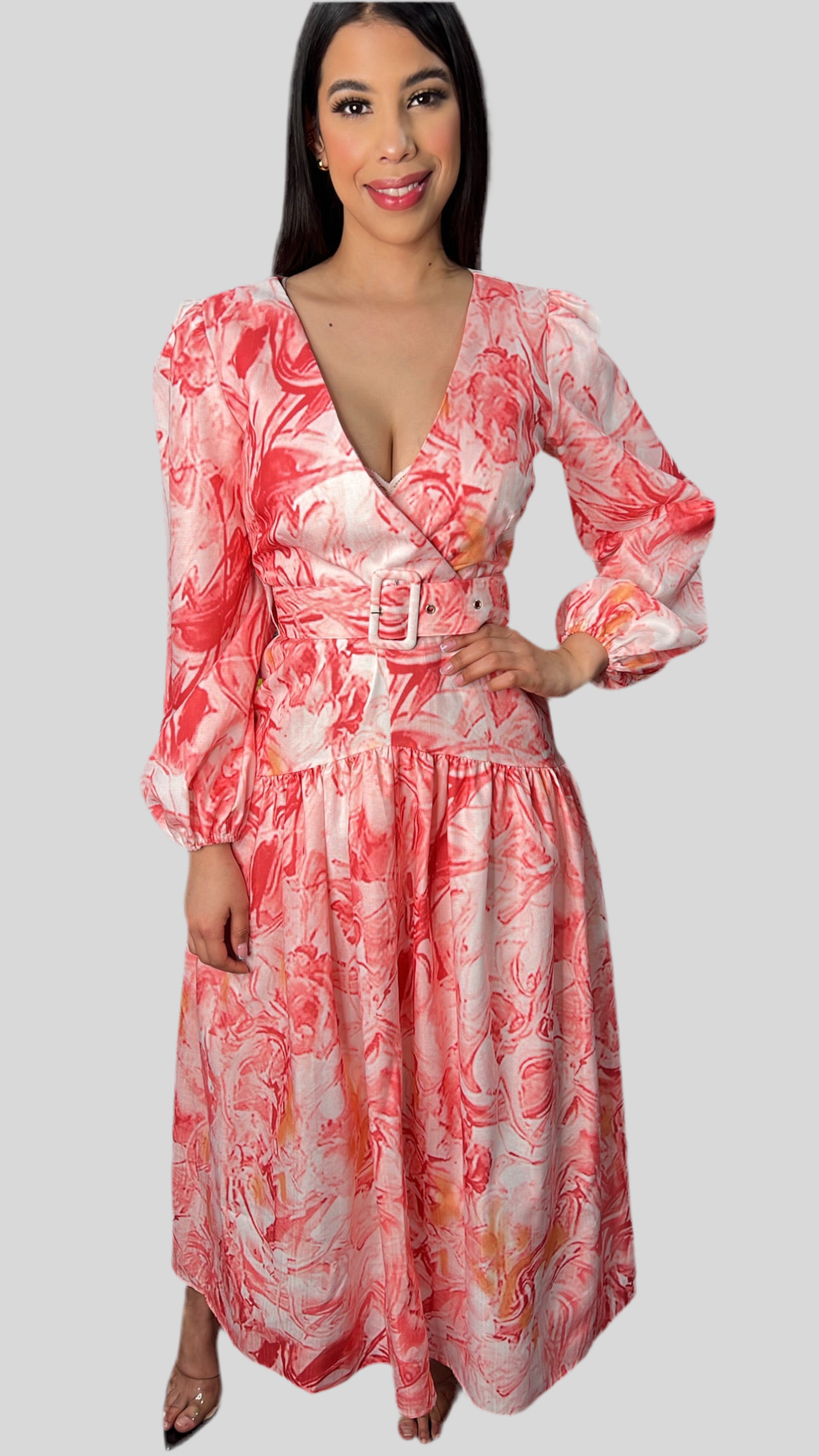 Autumn New Print Long Dresses Women Fashion Temperament V-neck Long Sleeve A-line Dress Elegant Lady Commuting Vestidos