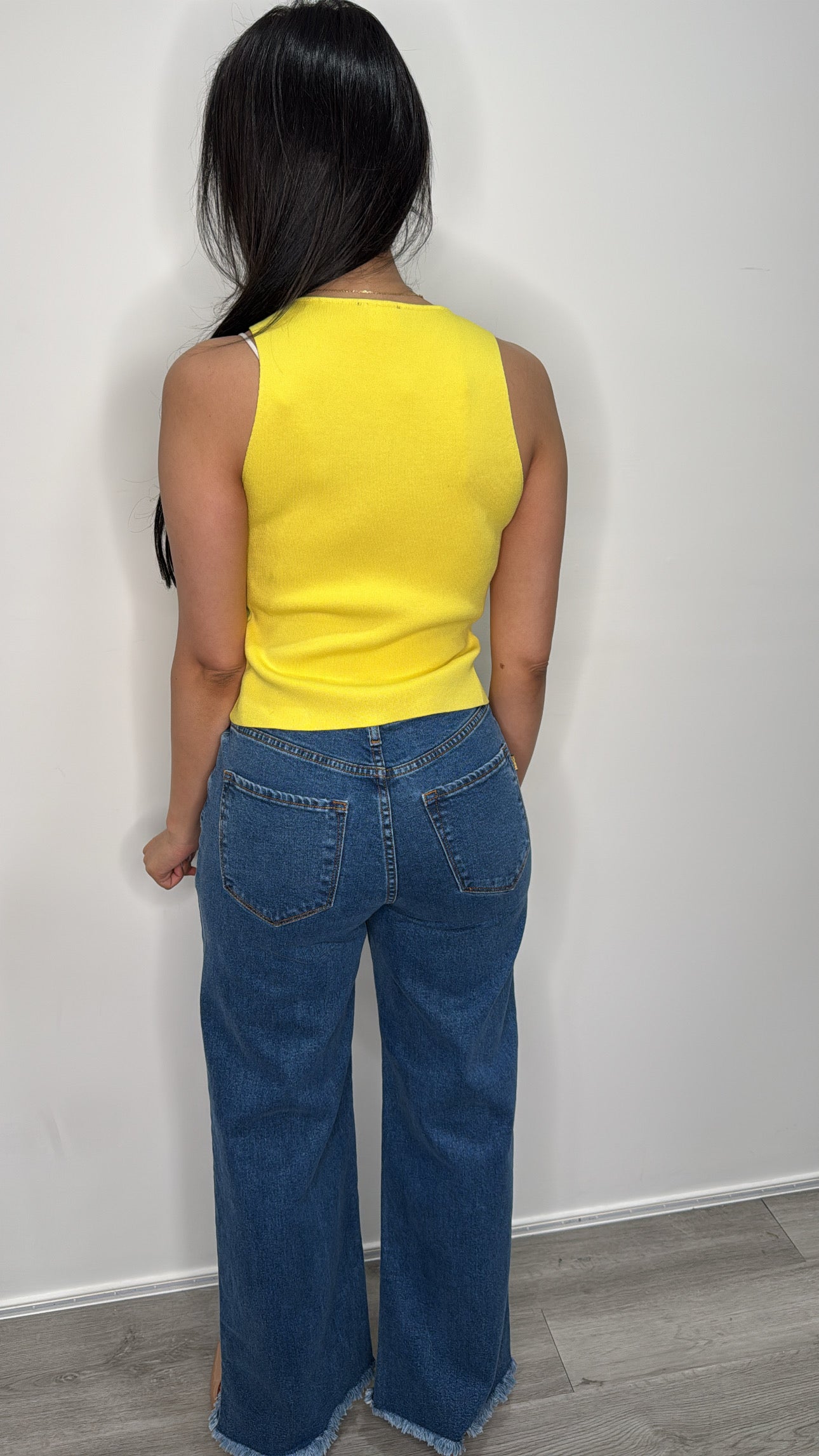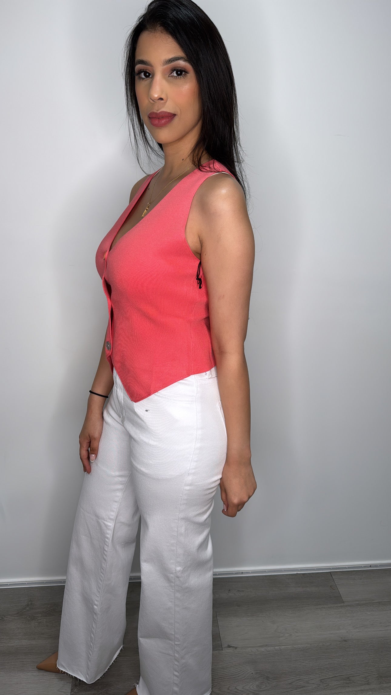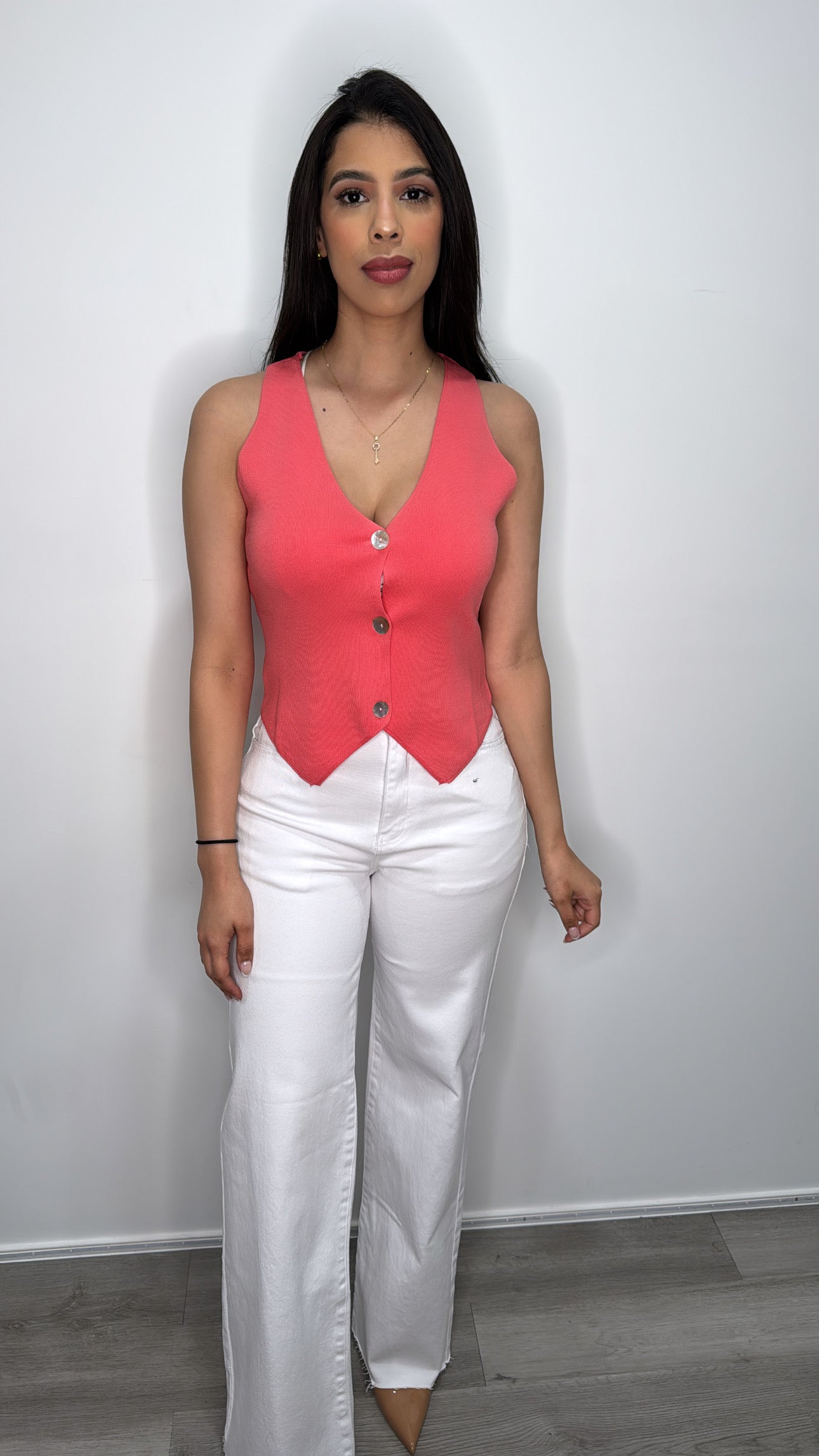 MUJER Pink Knit Sleeveless Vest Women Cropped Sweater Vest Top Women Yellow Button Vests Women Streetwear Waistcoat Knitwears